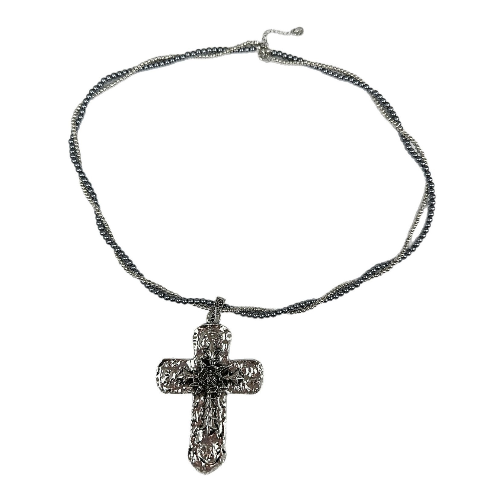 Original Crohn European and American Heavy Industry Pearl Cross Pendant Necklace Women's Trendy Niche Y2K Subculture Chain Spicy