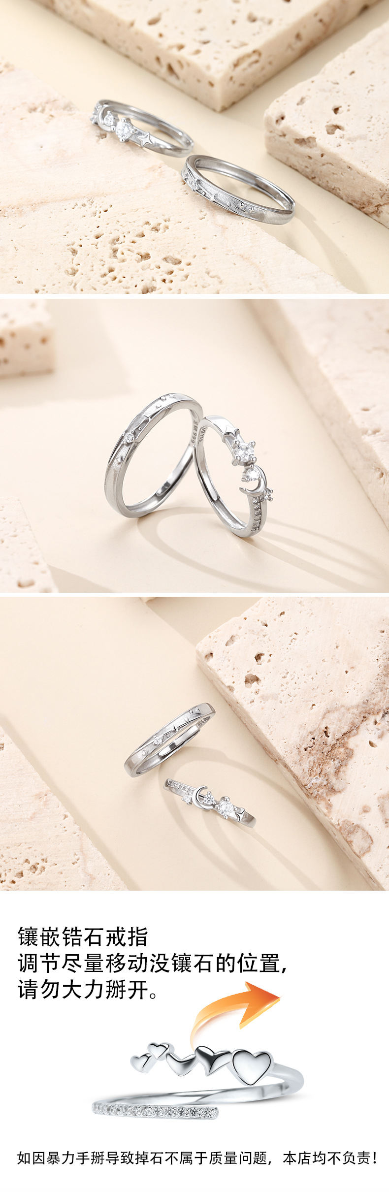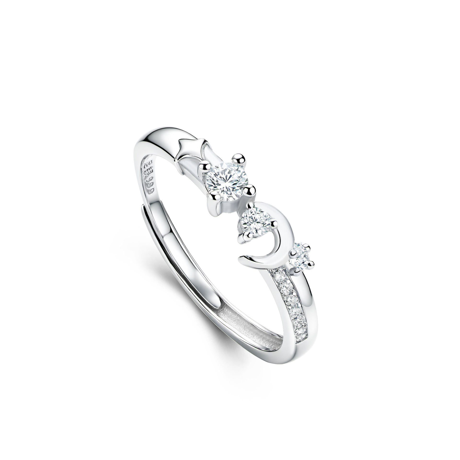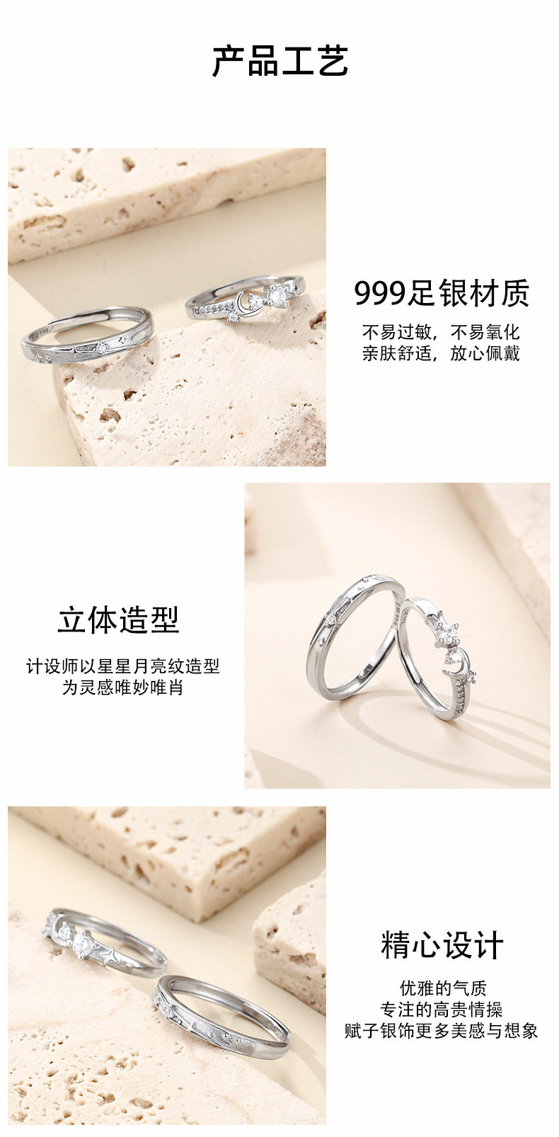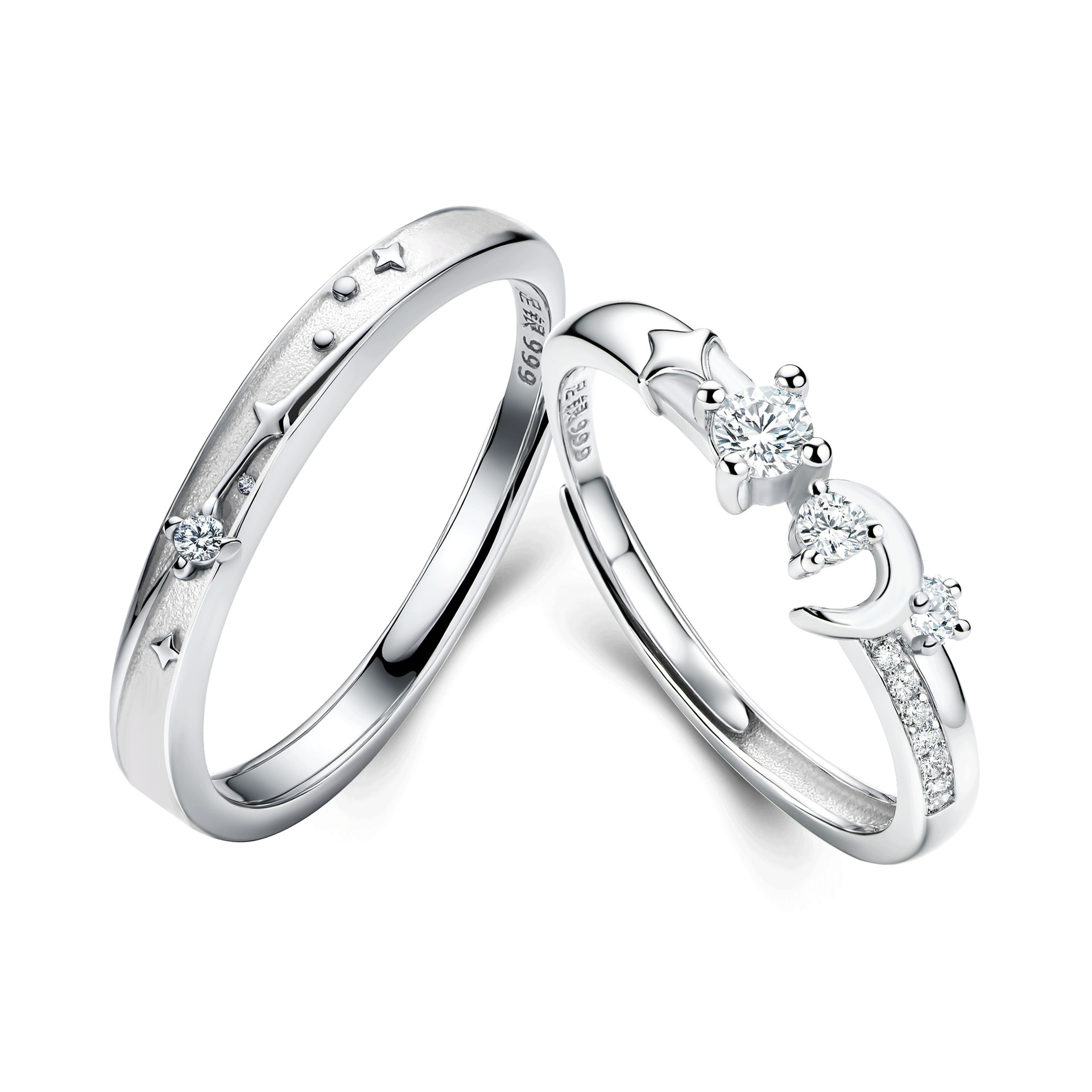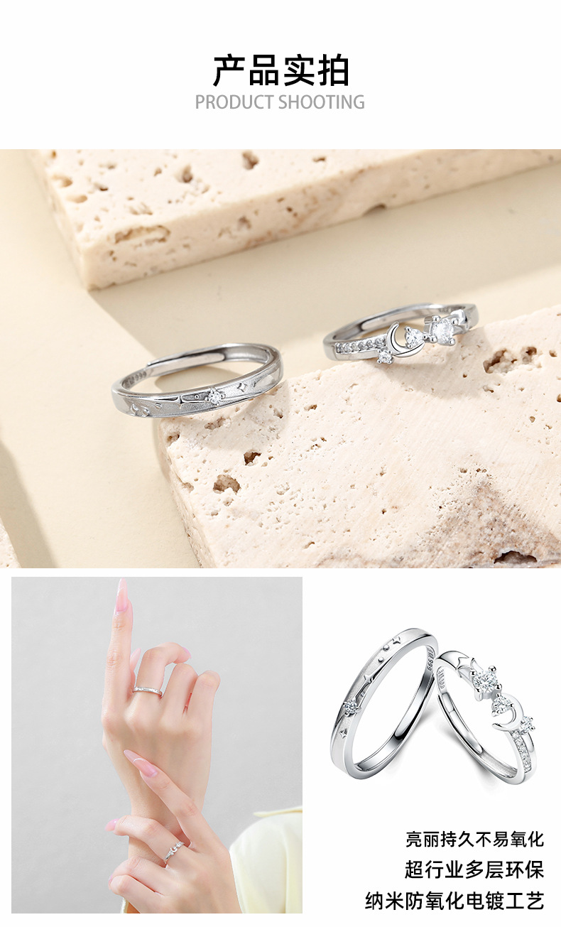 S999 Sterling Silver Star Moon Tonghui Couple Ring Men's Fashion Joker Zircon Ring Light Luxury Silver Ring