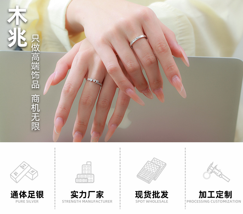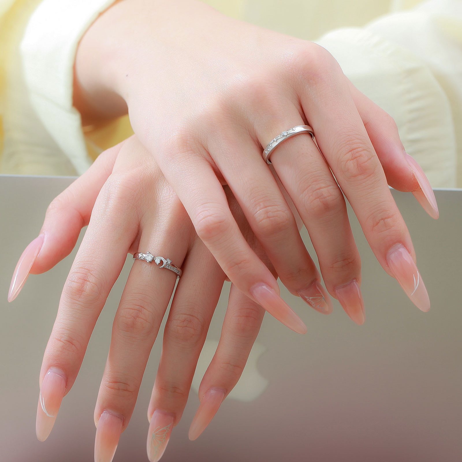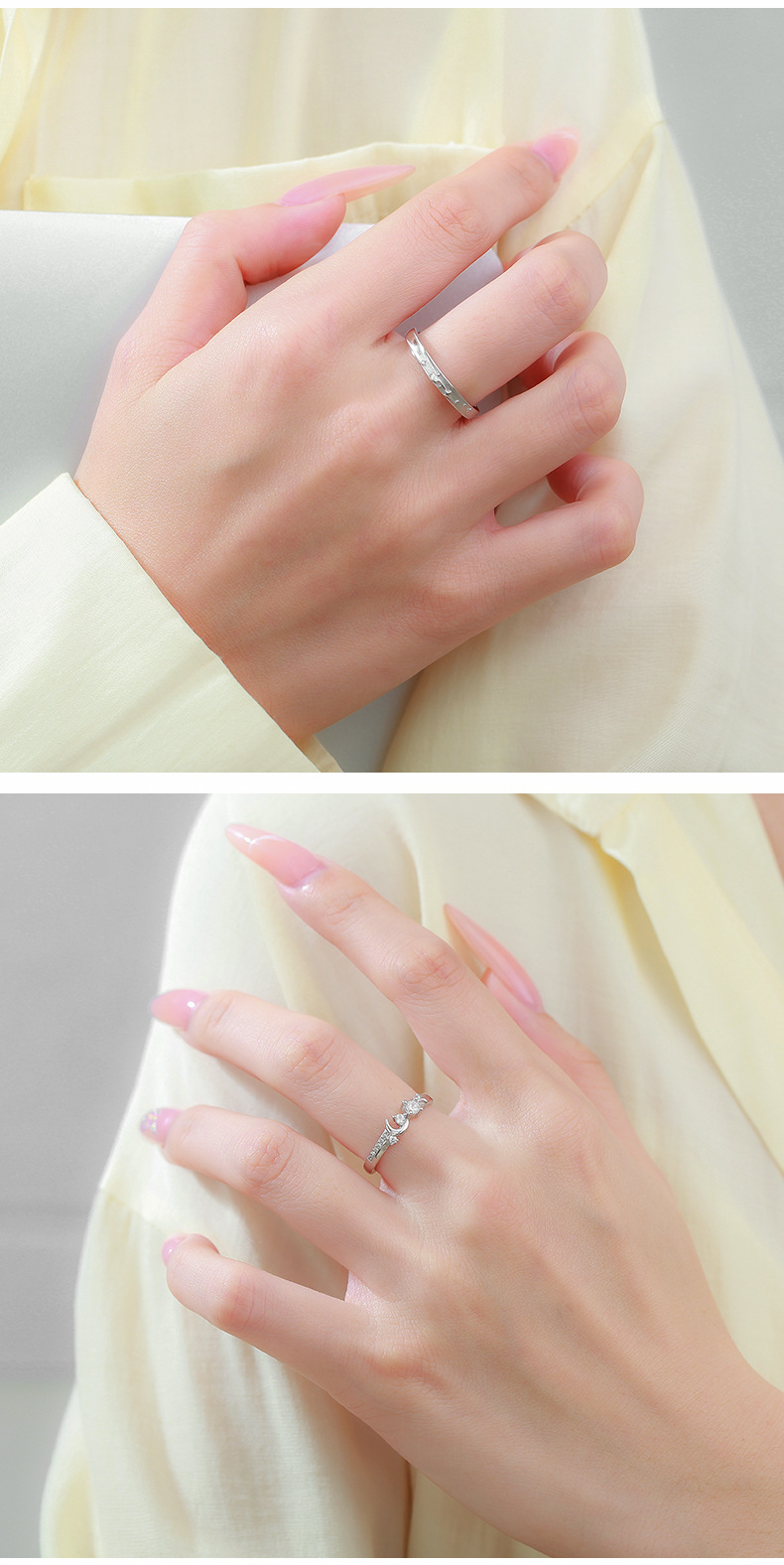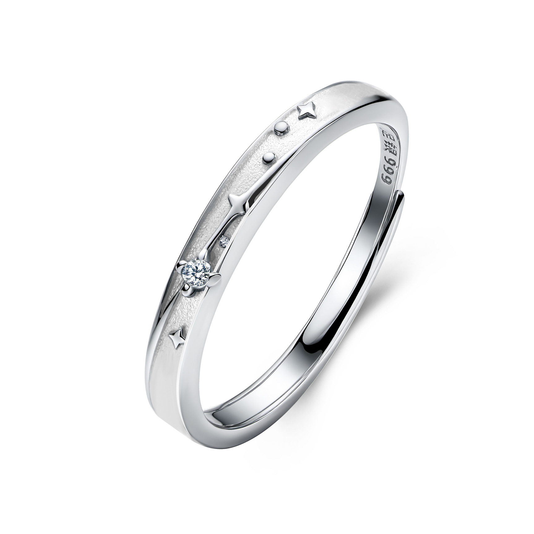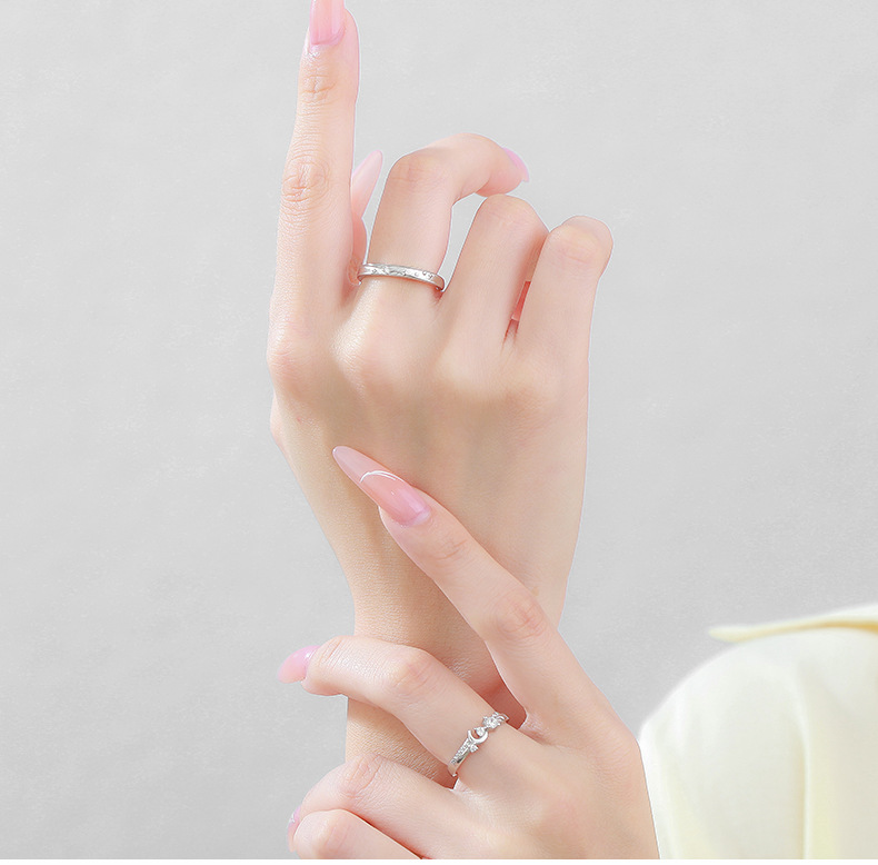 S999 Sterling Silver Star Moon Tonghui Couple Ring Men's Fashion Joker Zircon Ring Light Luxury Silver Ring