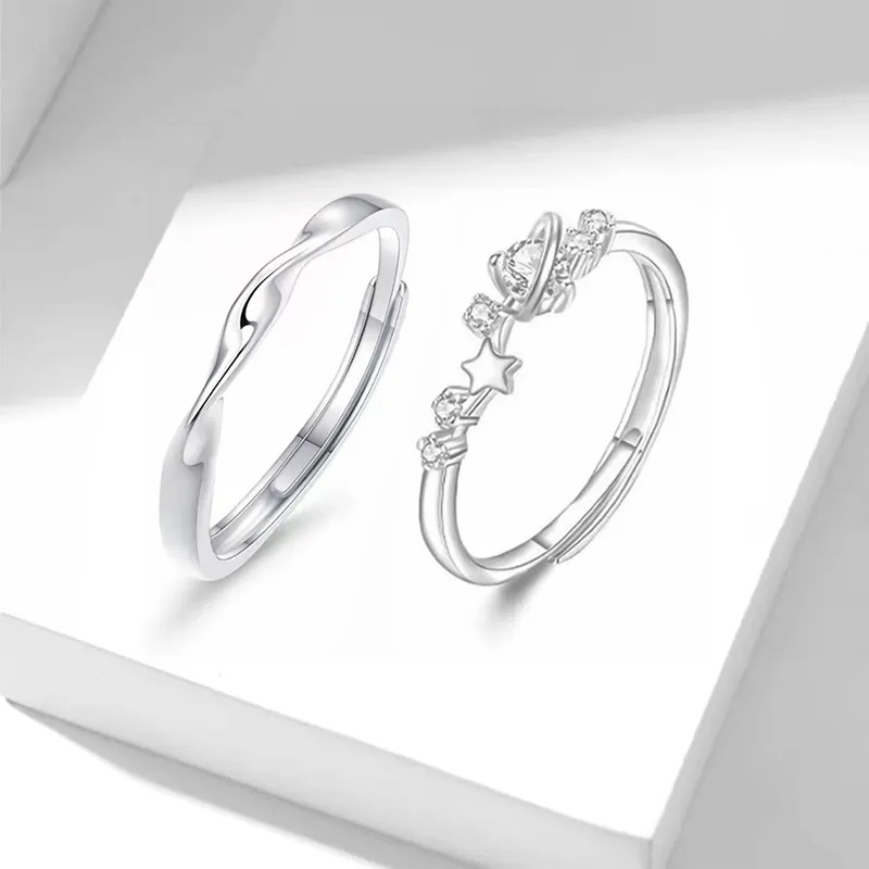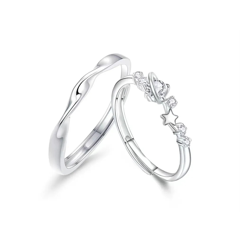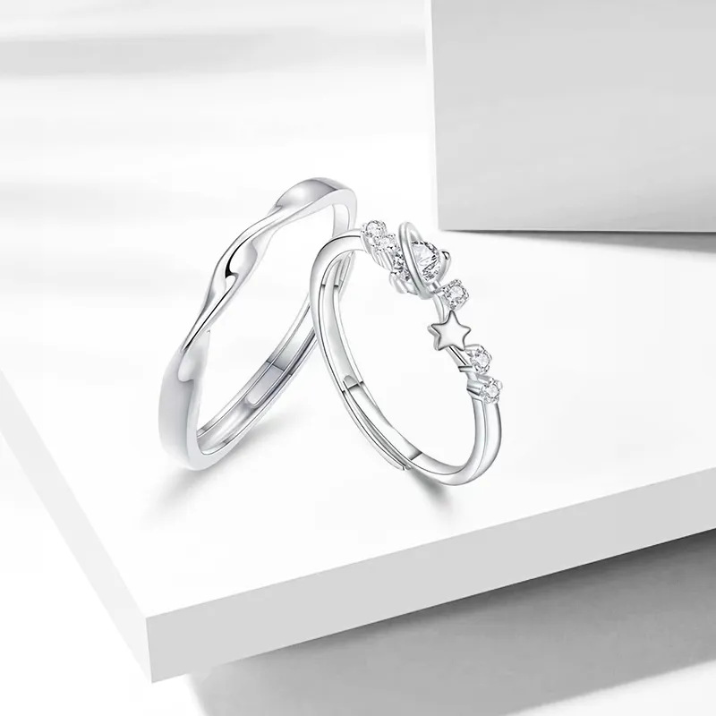 Mobius Silver 999 Couple's Ring Light Luxury High-Level Star Ring Instagram Style Valentine's Day Star Ring