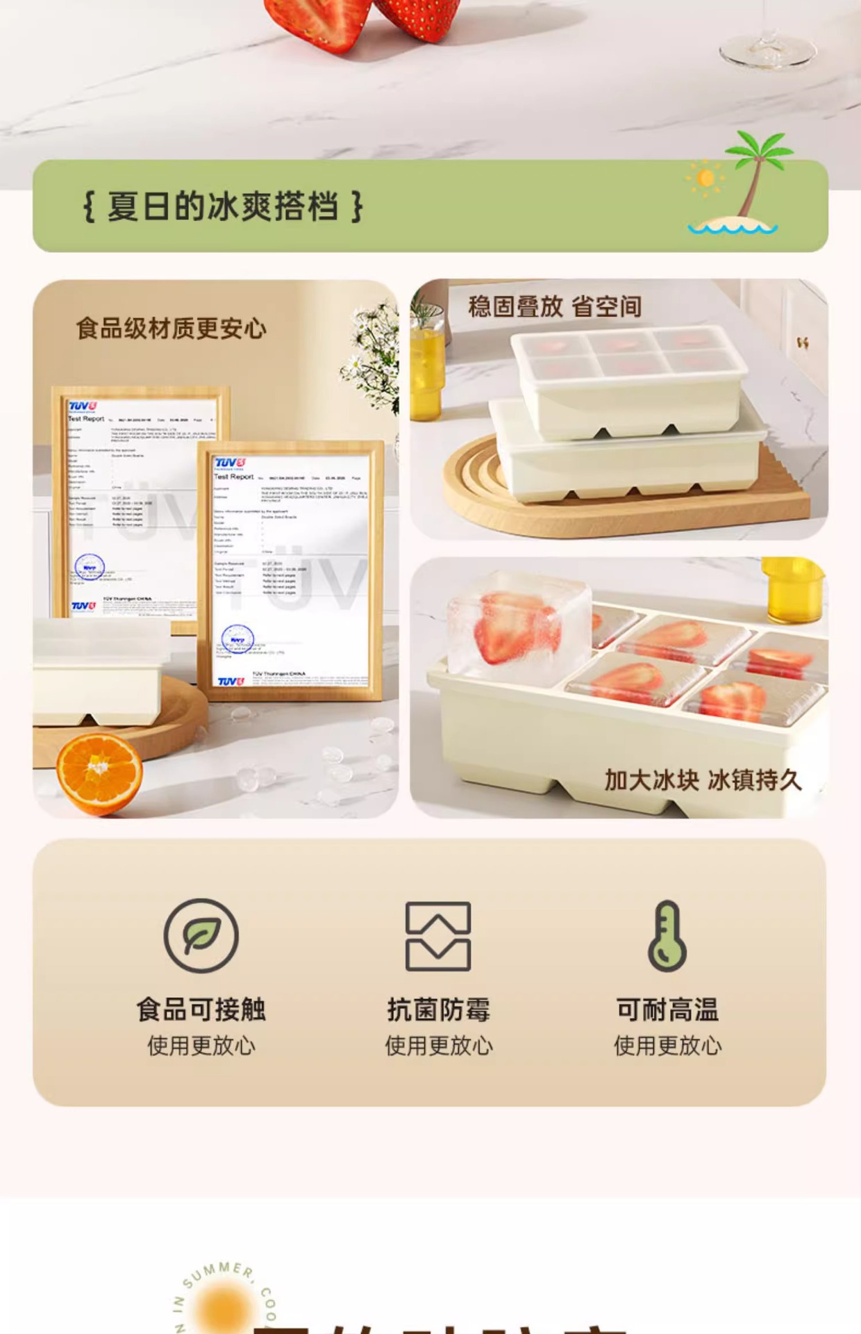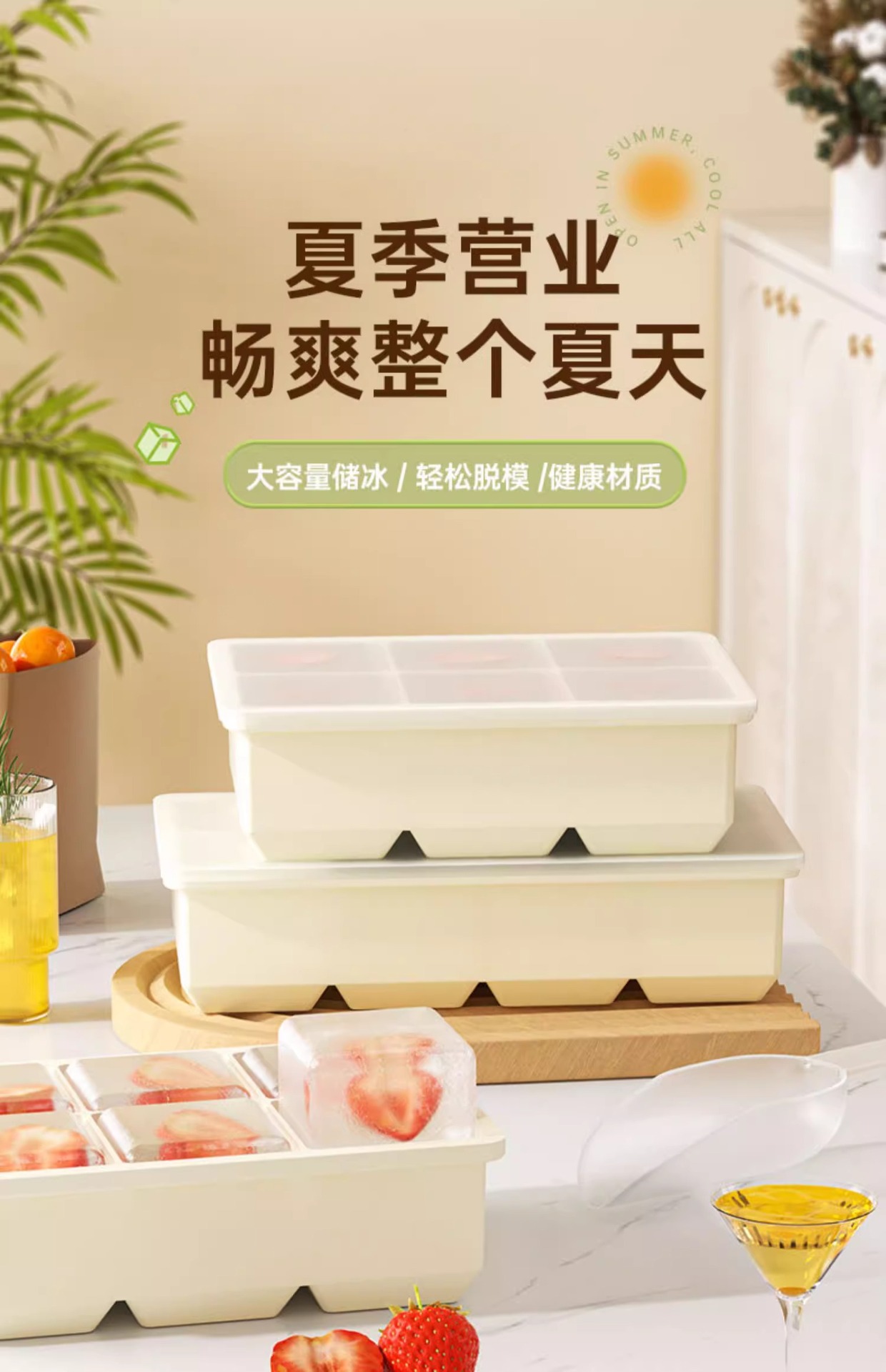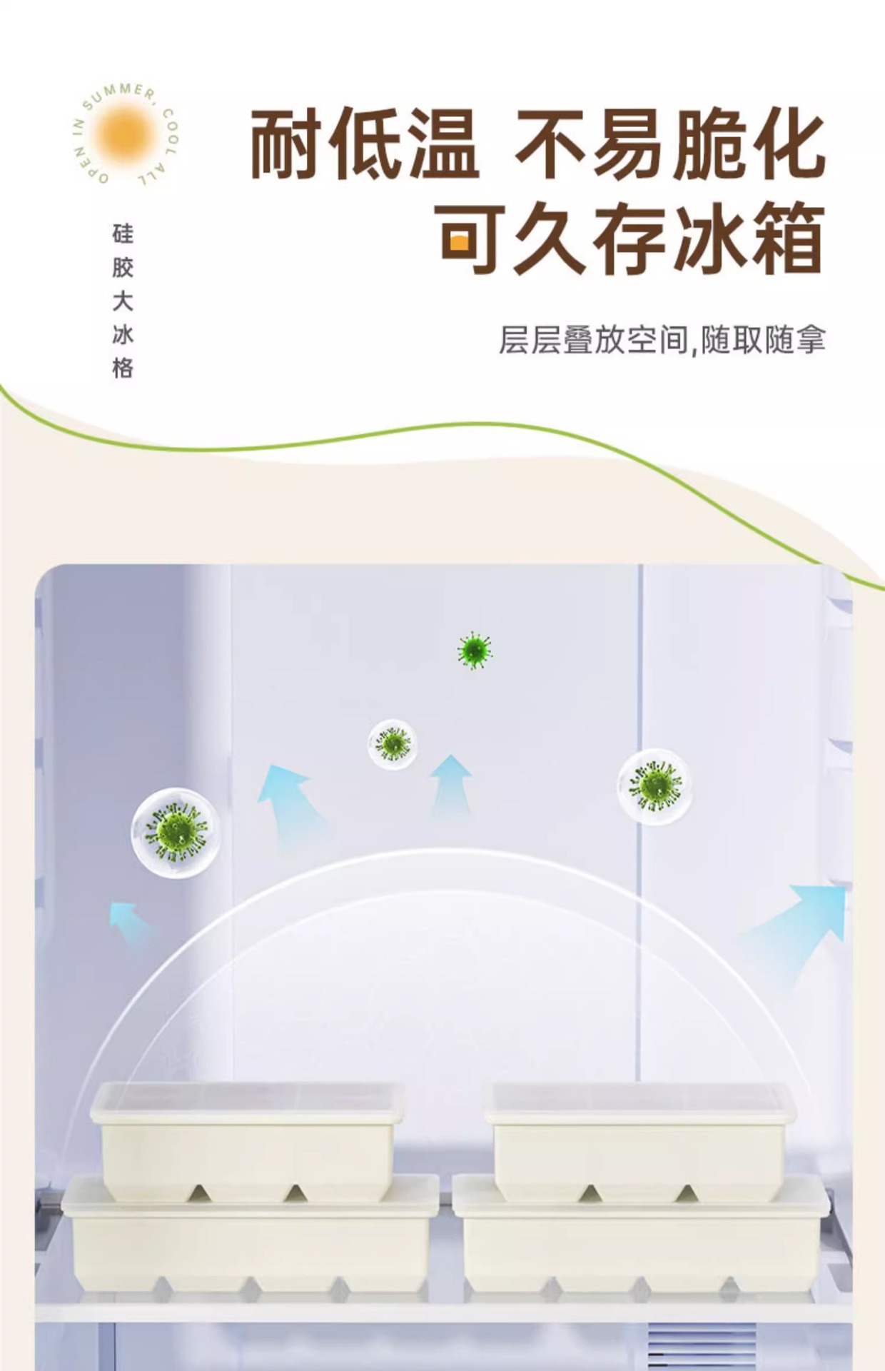 Large Ice Cube Mold Large Food Grade Silicone Ice Cube Household Ice Storage with Lid Ice Box Refrigerator Frozen Ice Cube Artifact