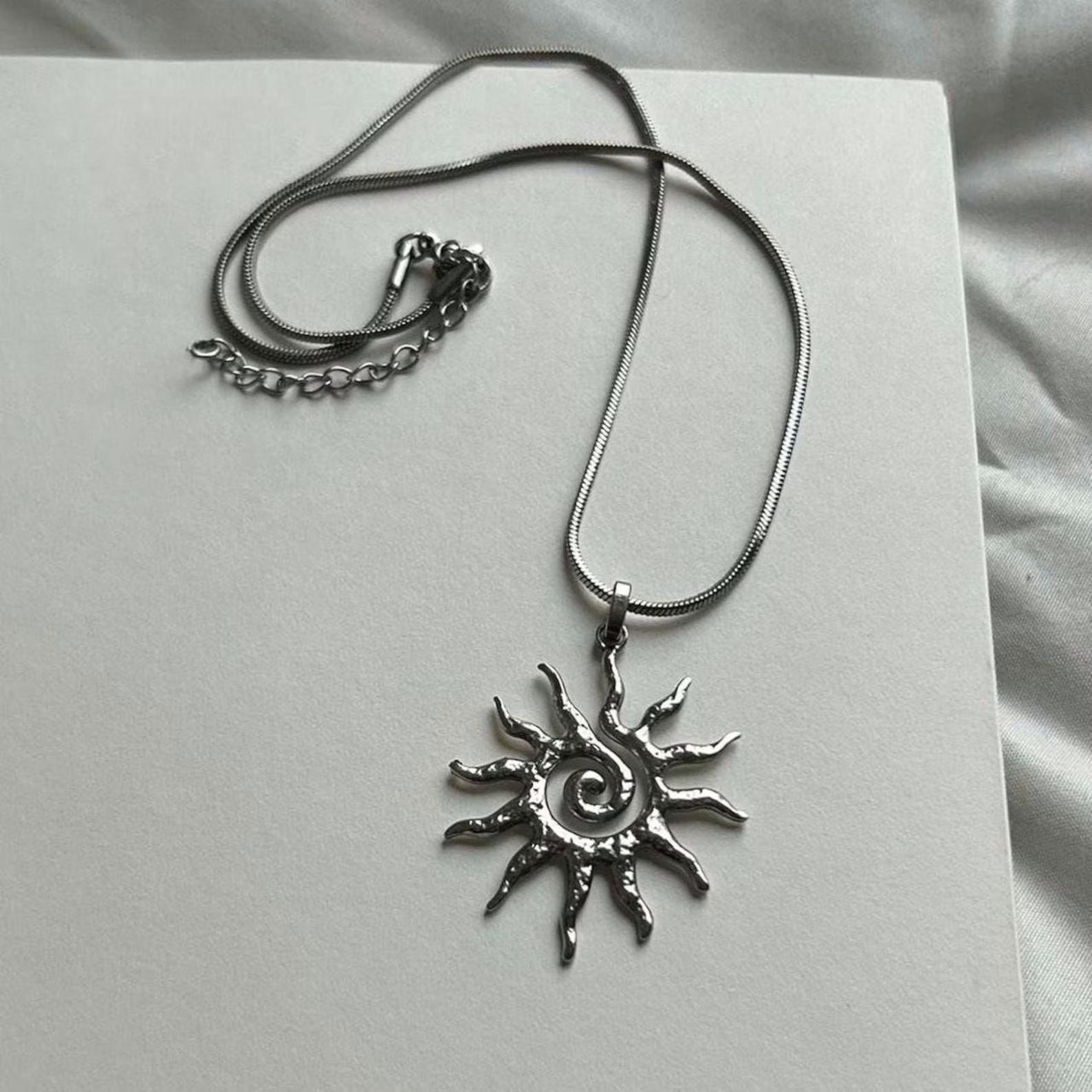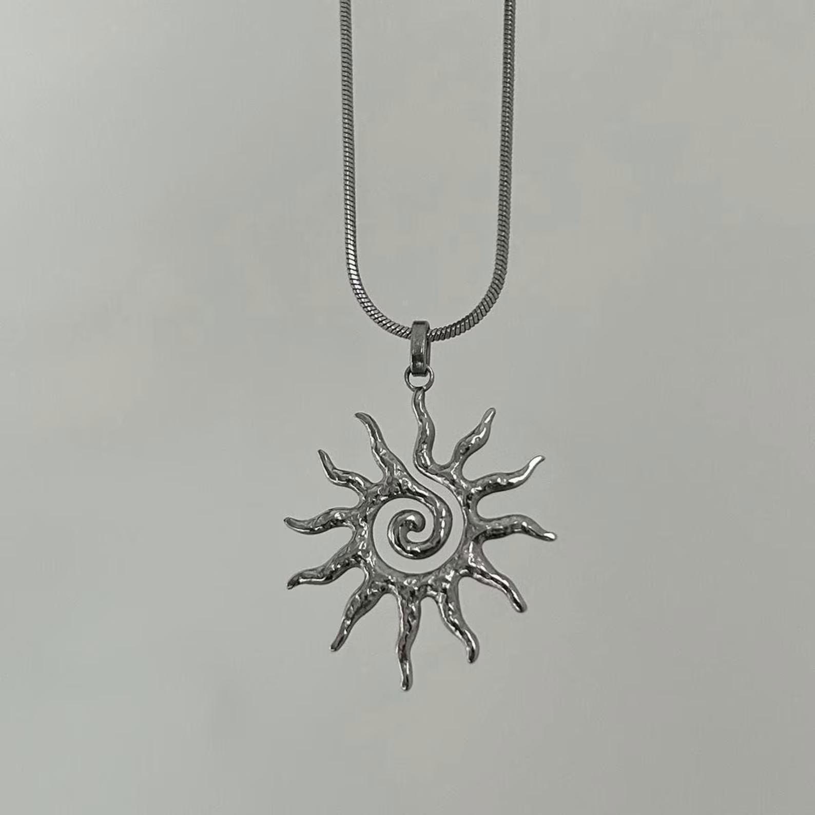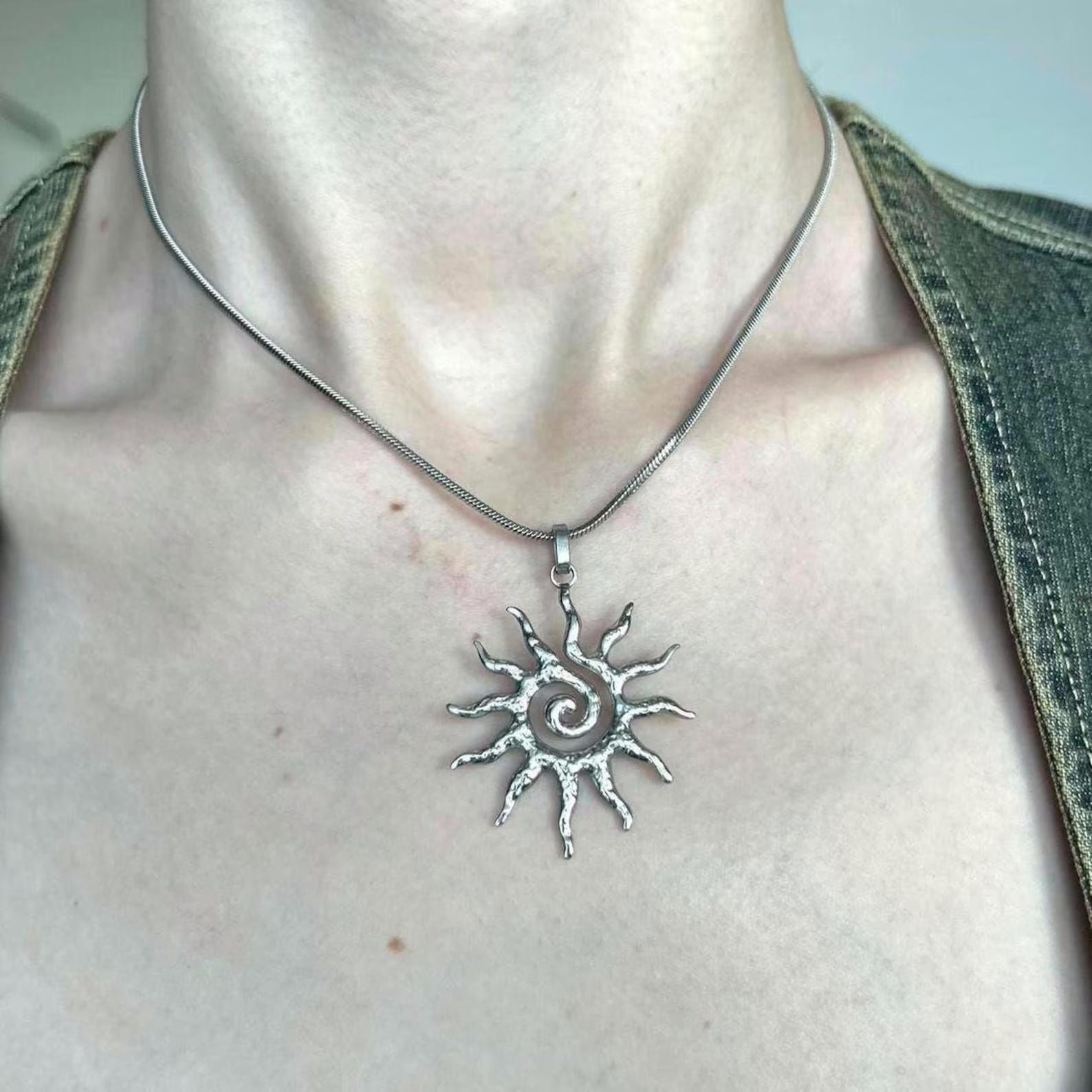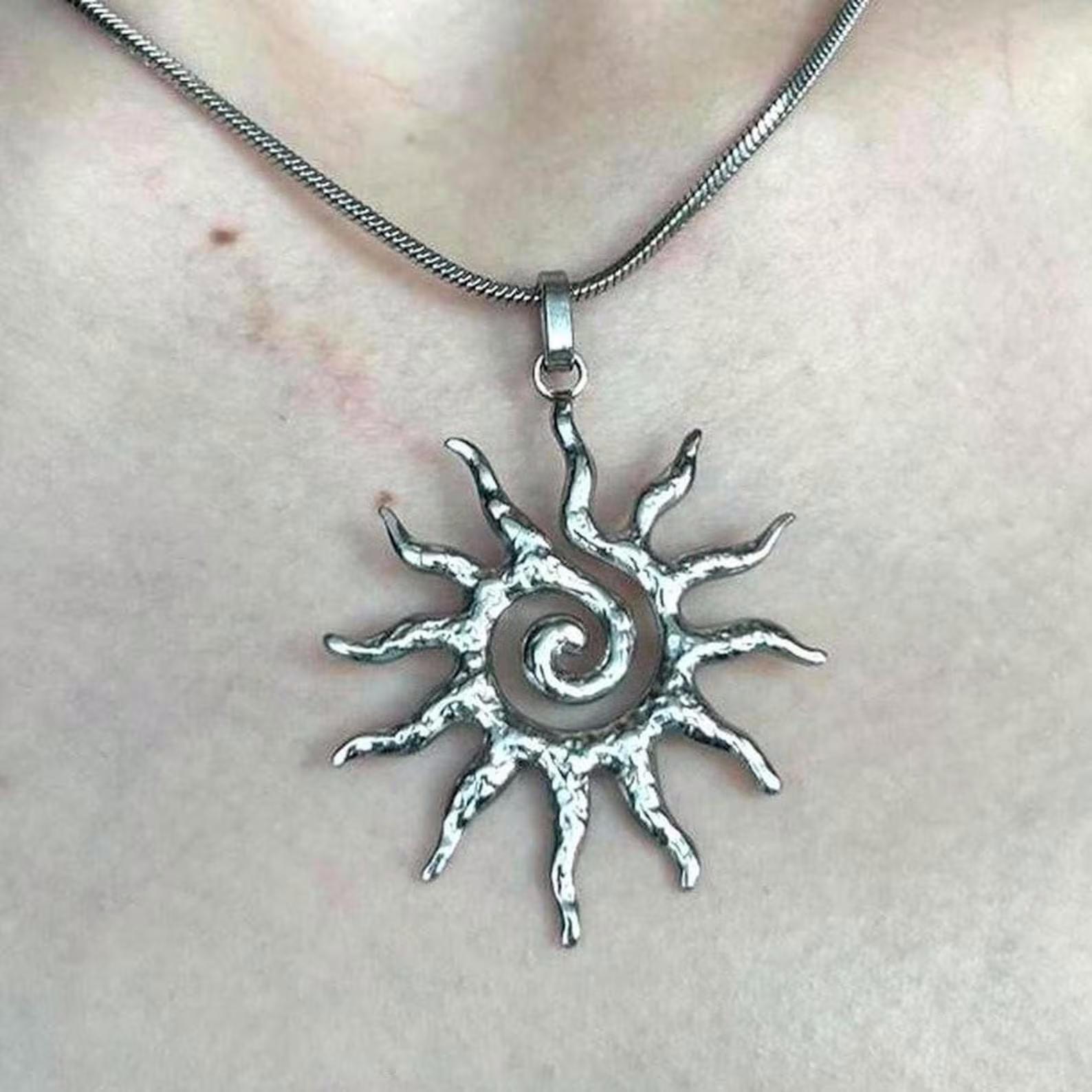stainless steel tribal spiral sun pendant necklace on snake chain bohemian y2k minimalist handmade