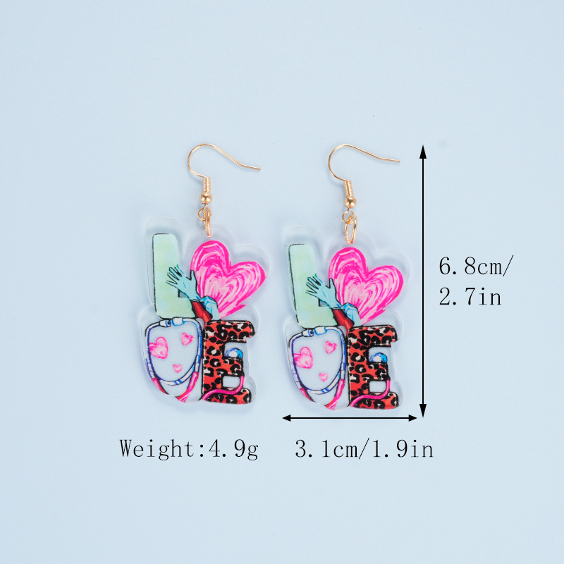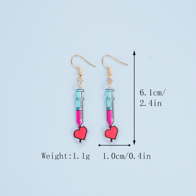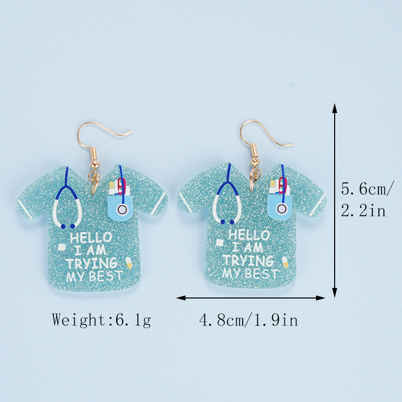 New Nurses Day Earrings Pink Blue Earrings Nurse Uniform Electrocardiogram Stethoscope Nurse Syringe Earrings