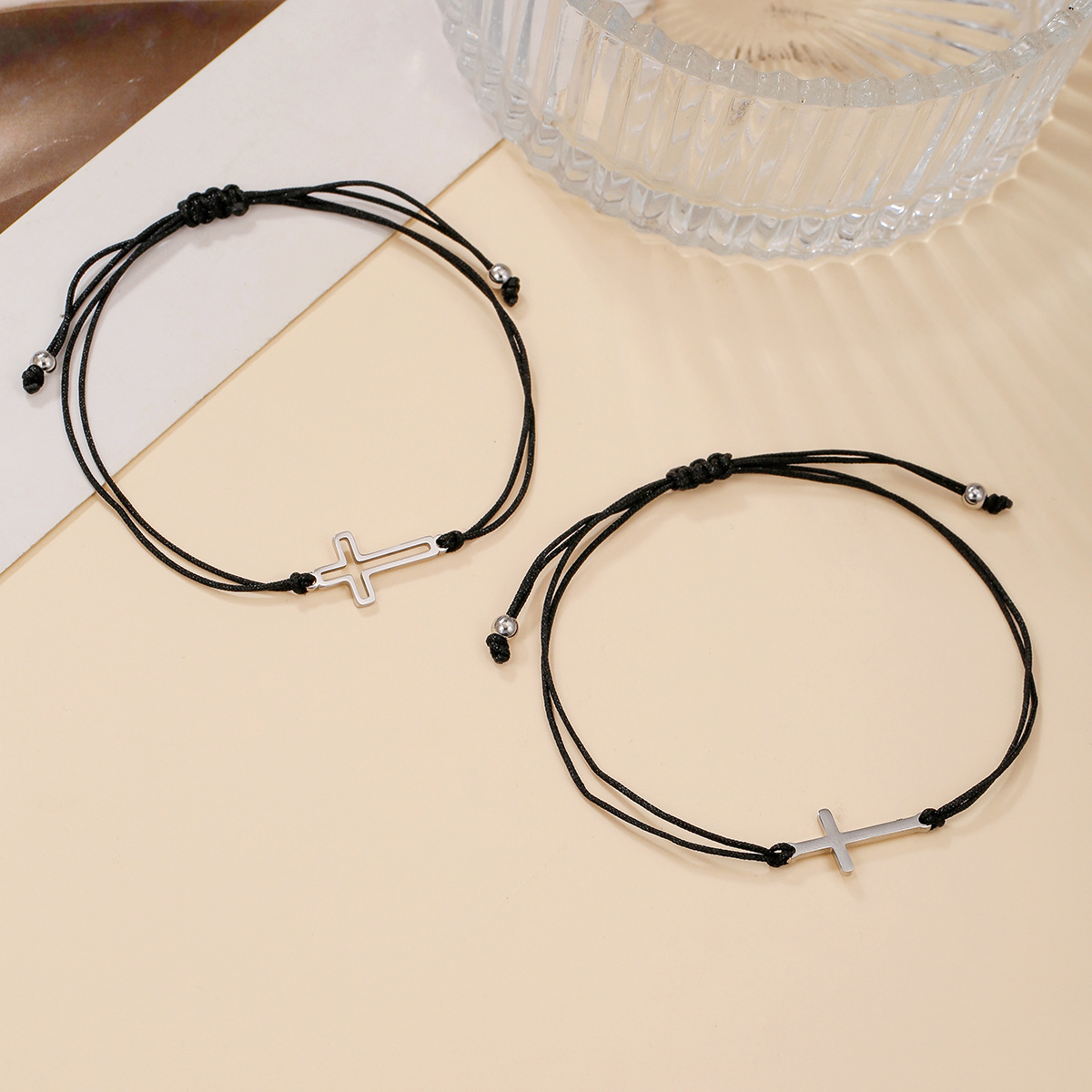 ✅ 材质:201不锈钢十字架吊坠 + 黑色编绳