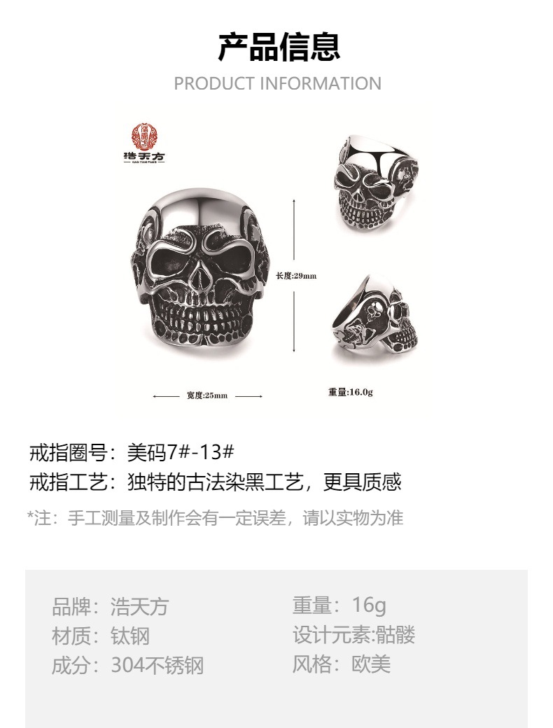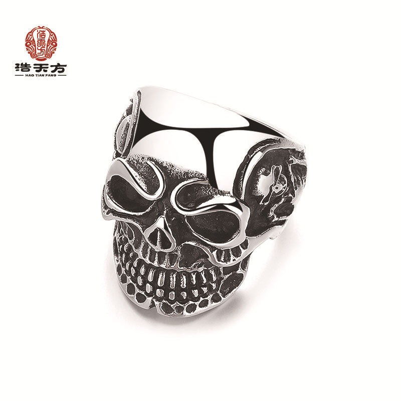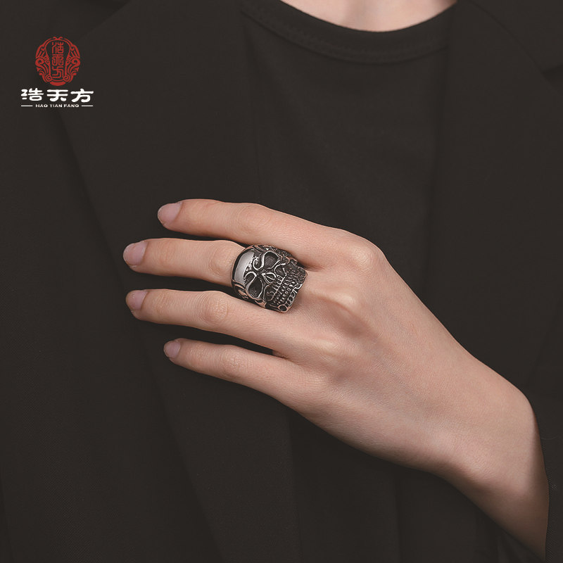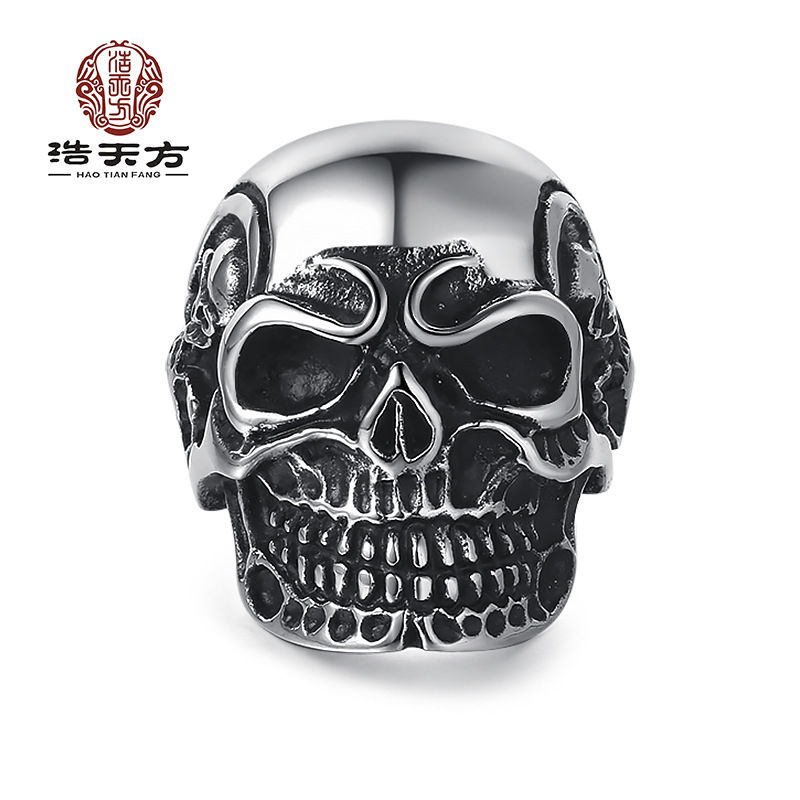 欧美骷髅戒指男款潮流嘻哈骷髅头指环复古做旧小众设计手饰批发