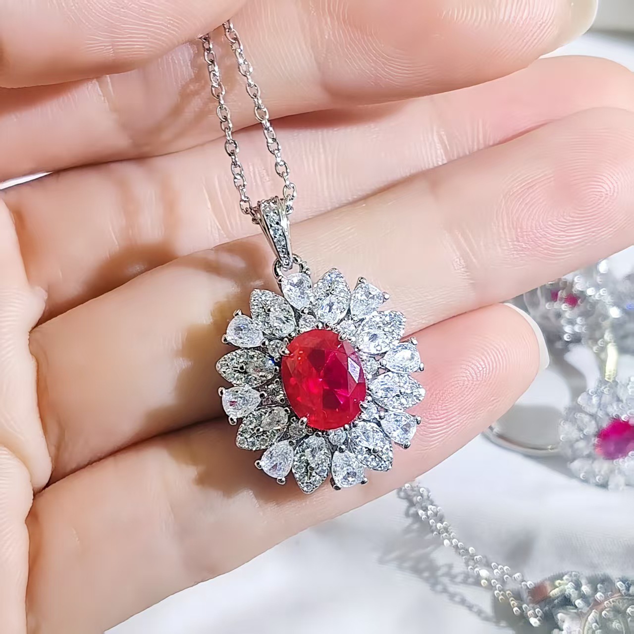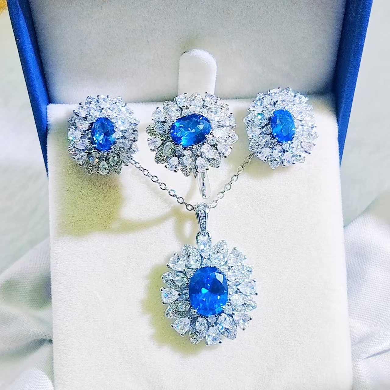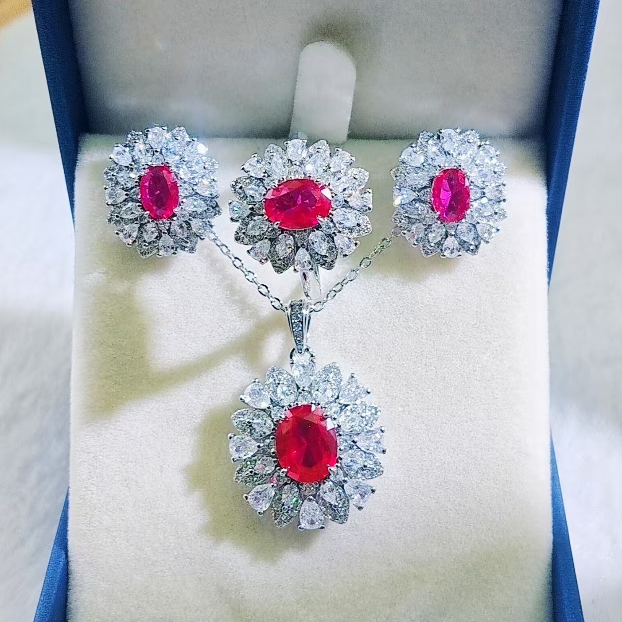 Simulation: Coconut round egg-shaped ruby and sapphire jewelry three-piece set