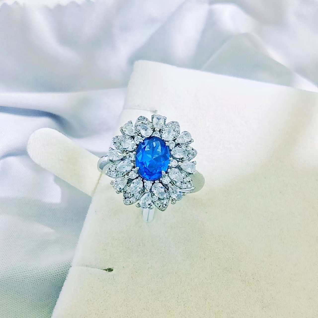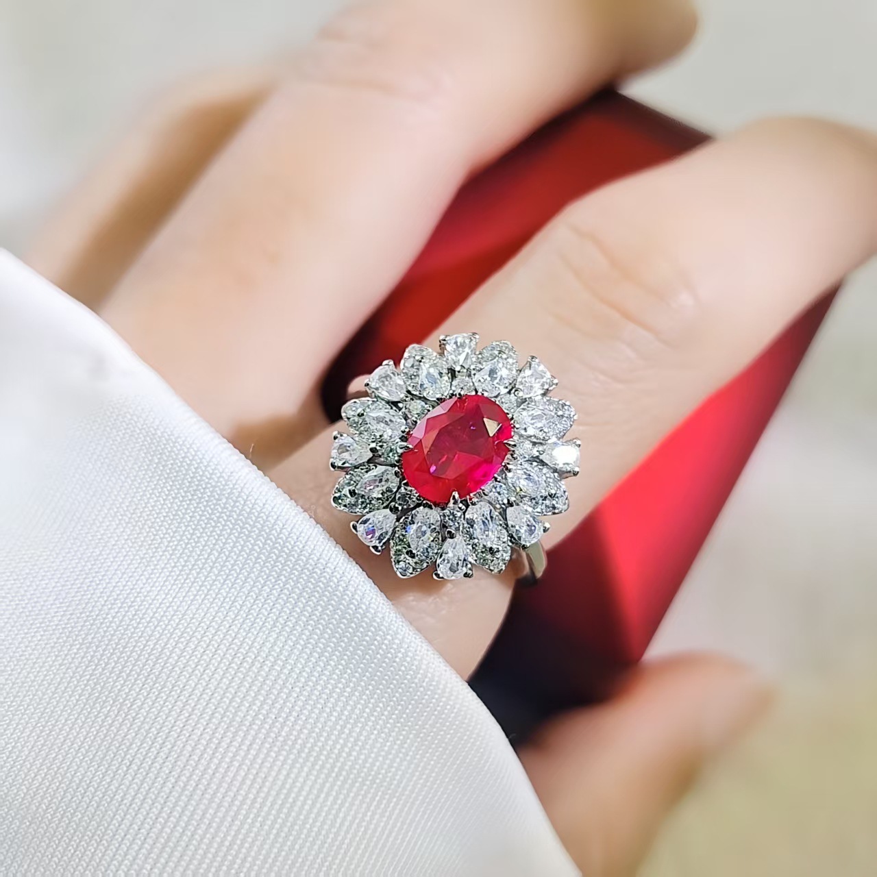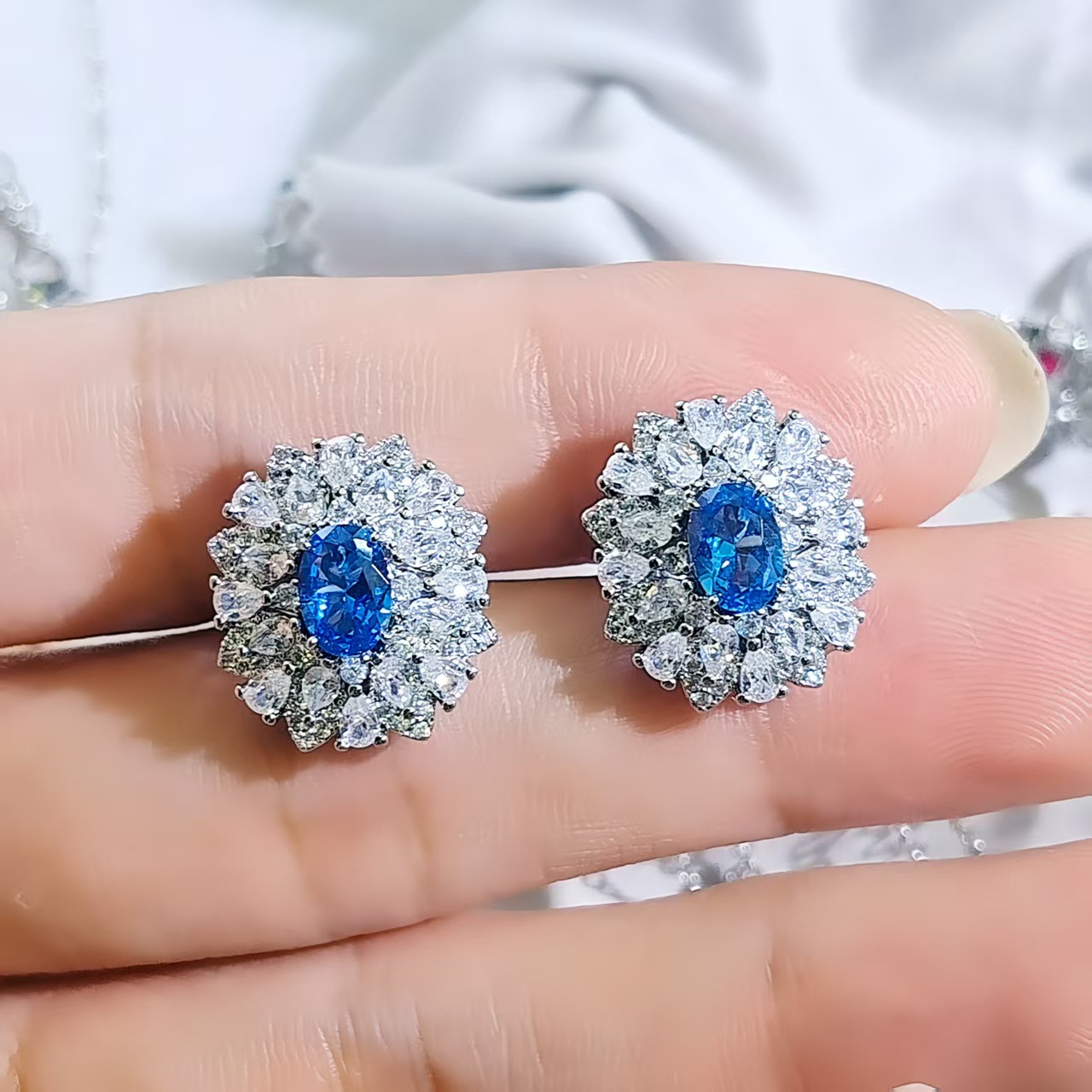 Simulation: Coconut round egg-shaped ruby and sapphire jewelry three-piece set