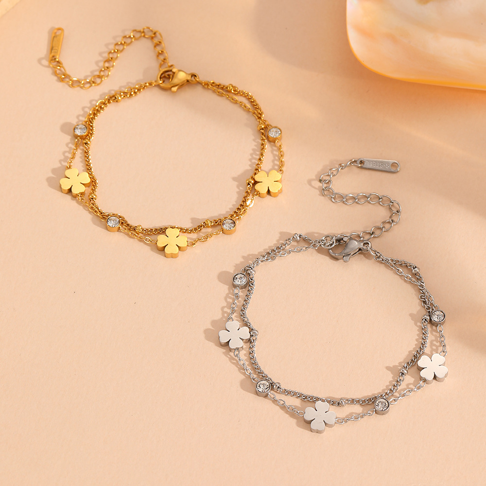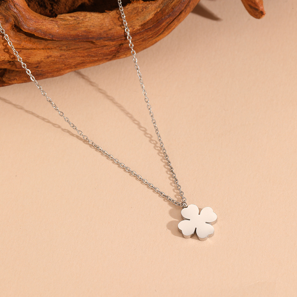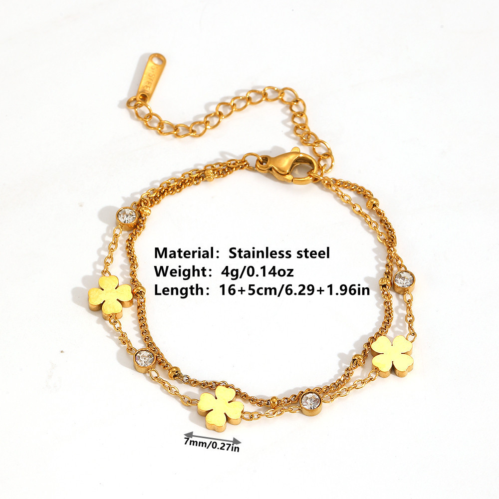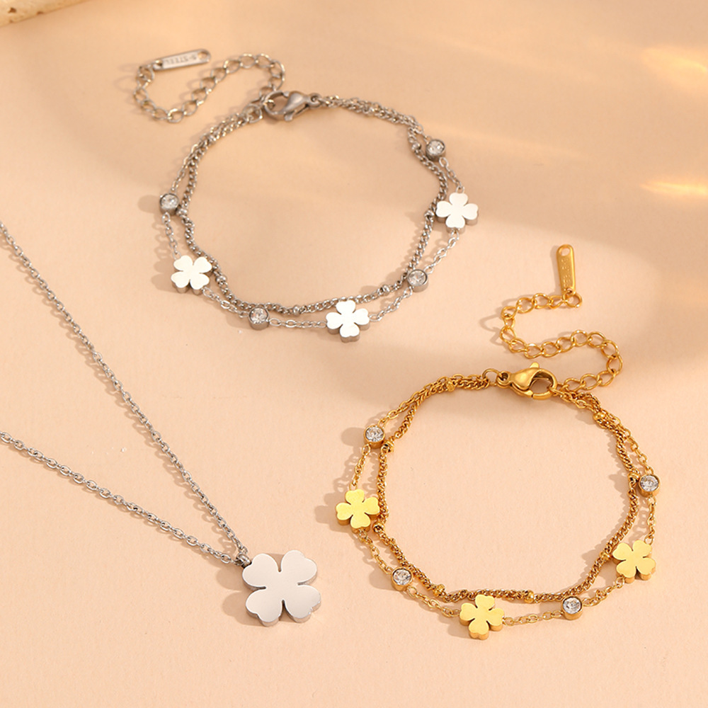 Cross-Border Stainless Steel Bead Flower Jewelry for Women European and American Titanium Steel Color-Preserving Four-Leaf Clover Four-Diamond Clip-On Jewelry Set