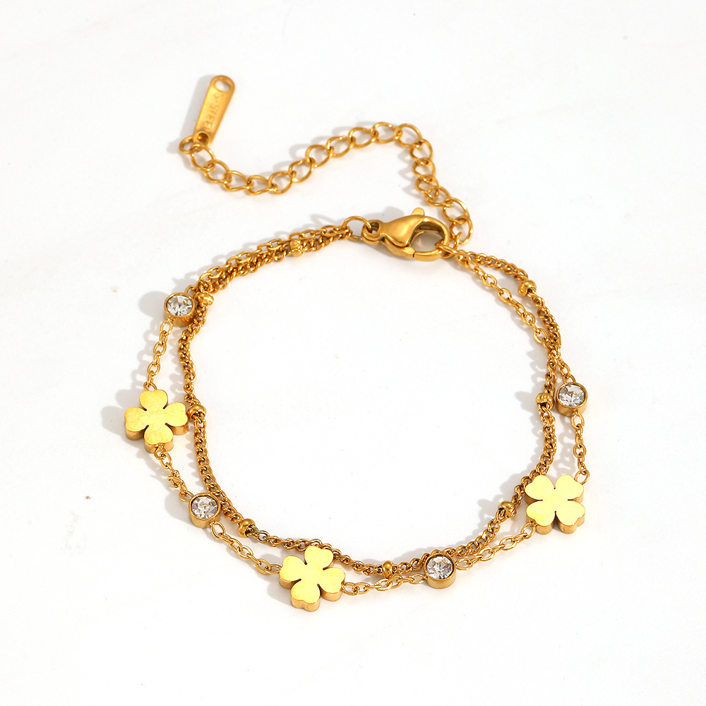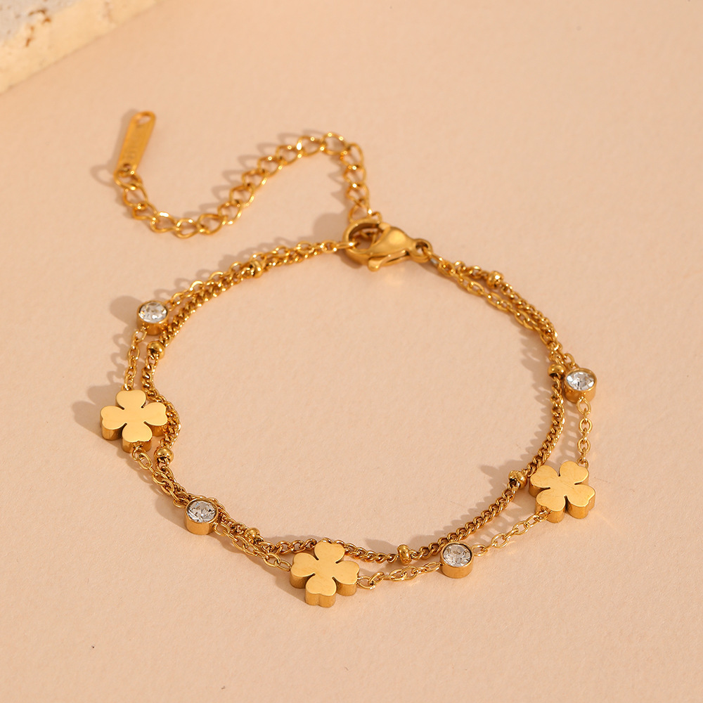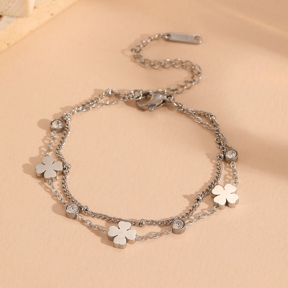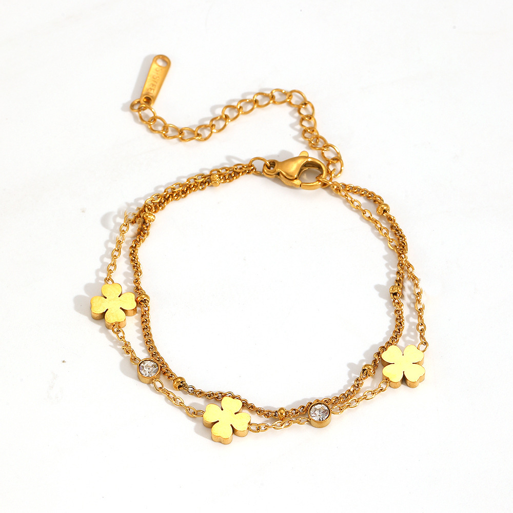 Cross-Border Stainless Steel Bead Flower Jewelry for Women European and American Titanium Steel Color-Preserving Four-Leaf Clover Four-Diamond Clip-On Jewelry Set