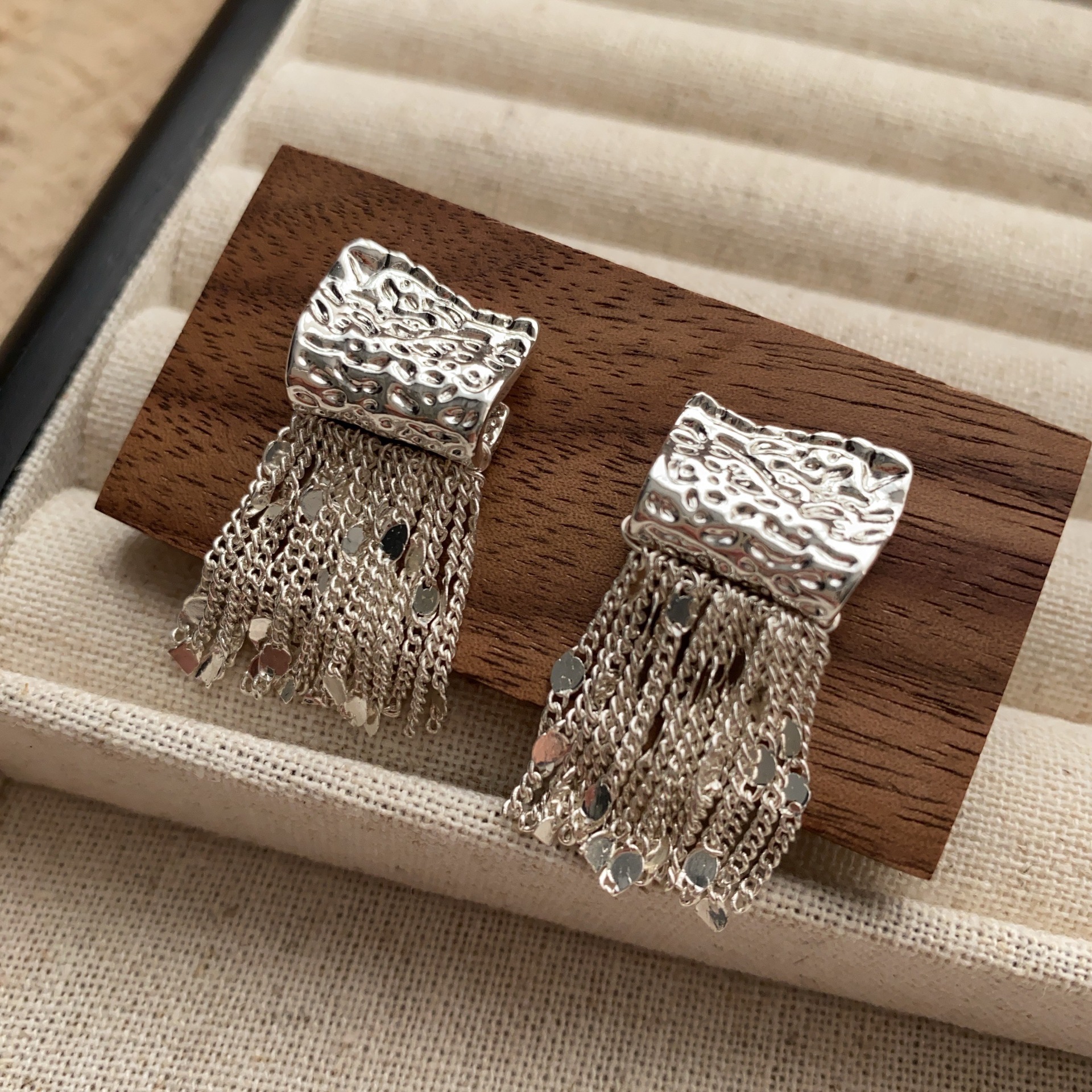 French Retro Fashion Light Luxury Tassel Earrings Niche Design High-End Earrings Geometric Smart Unique Earrings for Women