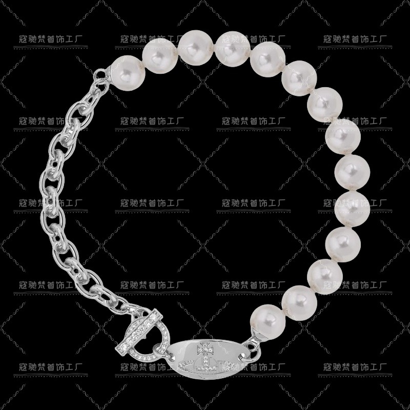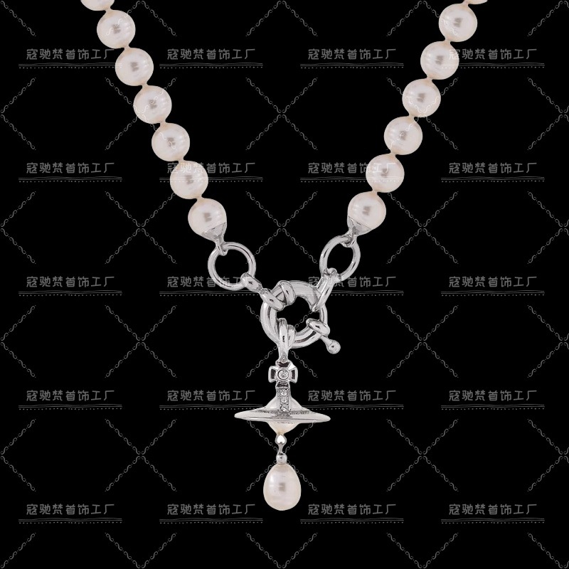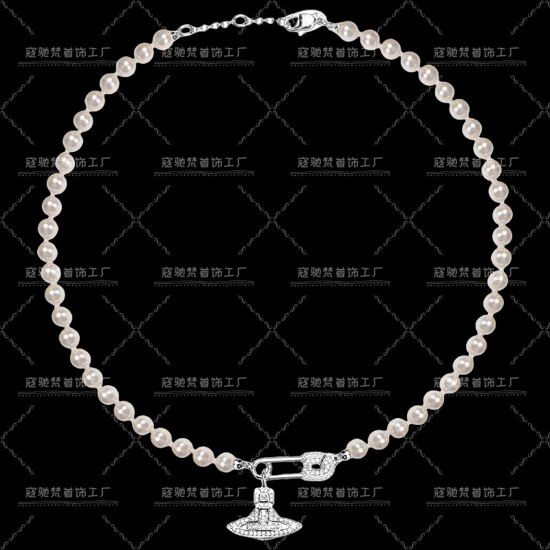 Color: 【50】silver diamond saturn oval brand t-buckle pearl necklace