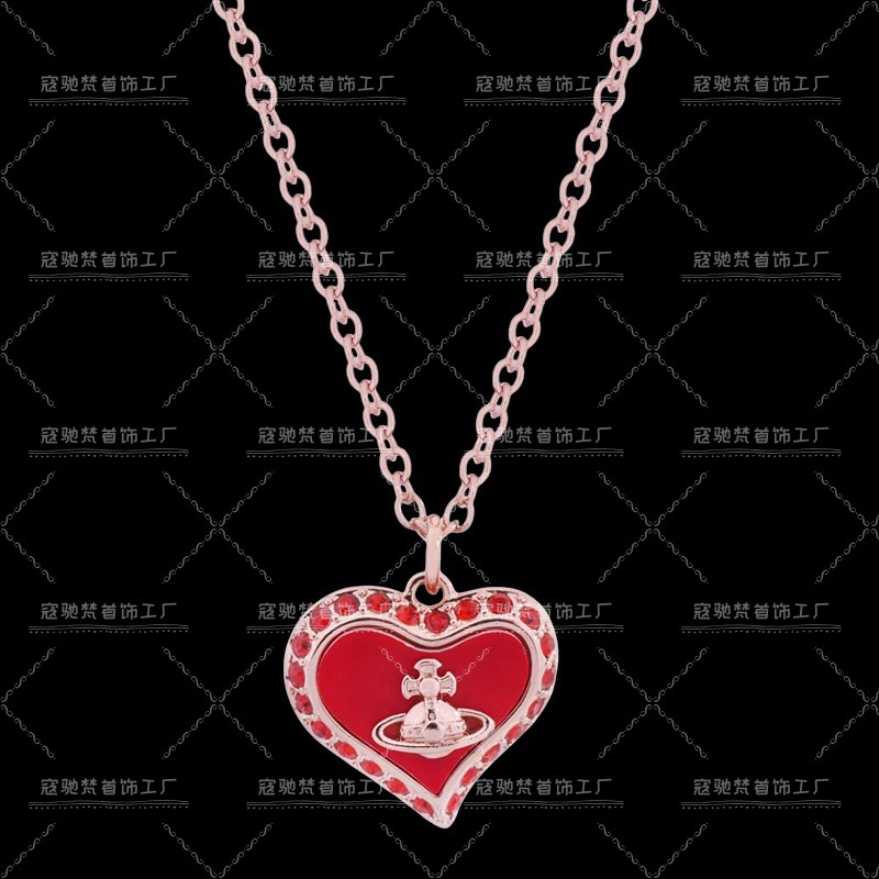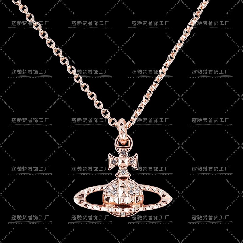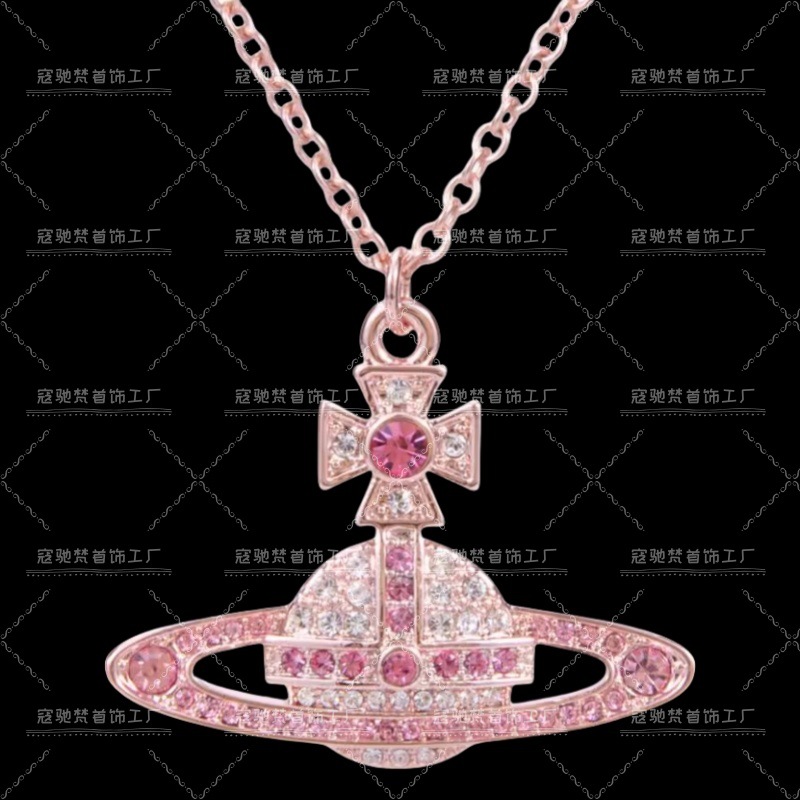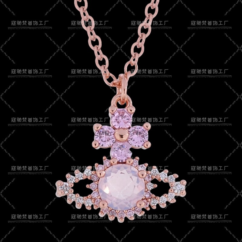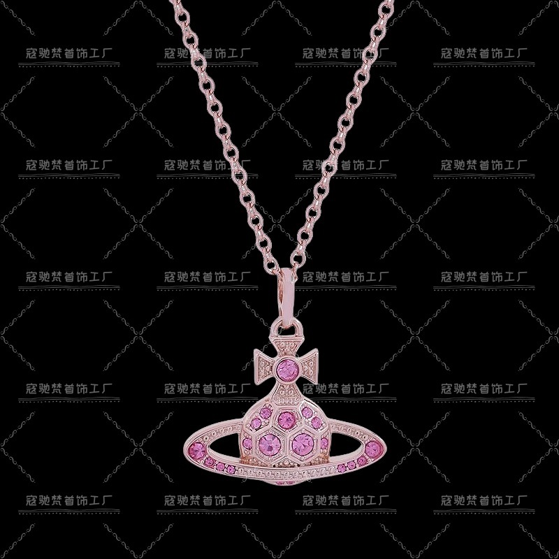 Color: 【6】rose pink honeycomb full diamond saturn necklace