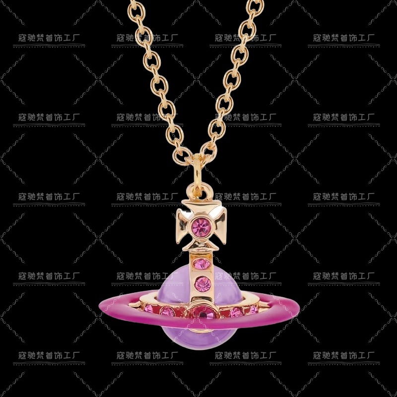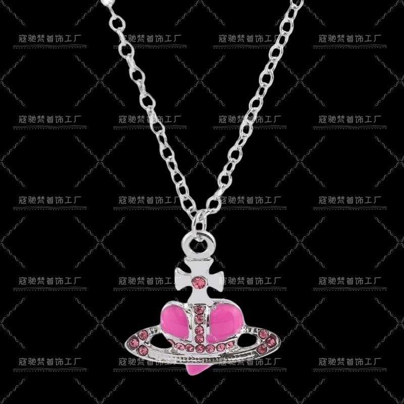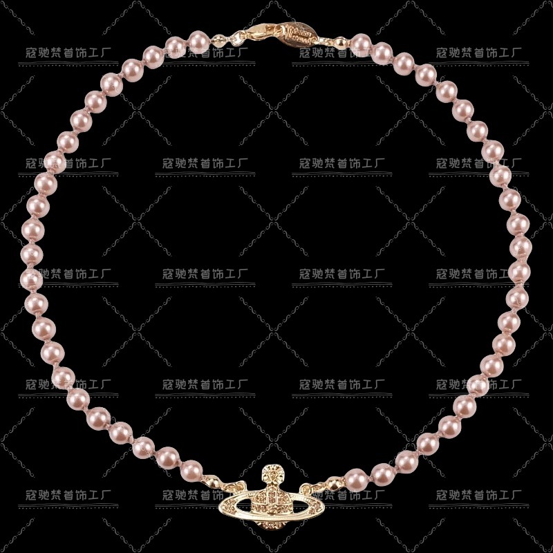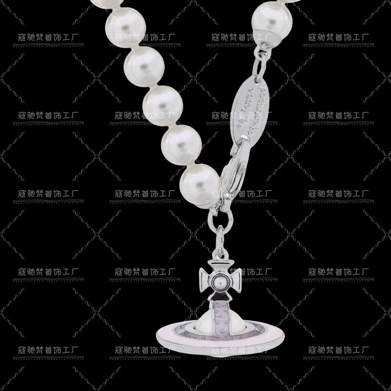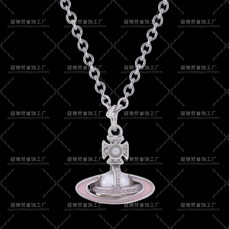 Color: 【23】silver pink enamel three-dimensional saturn pearl necklace