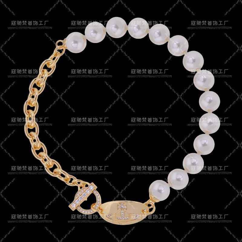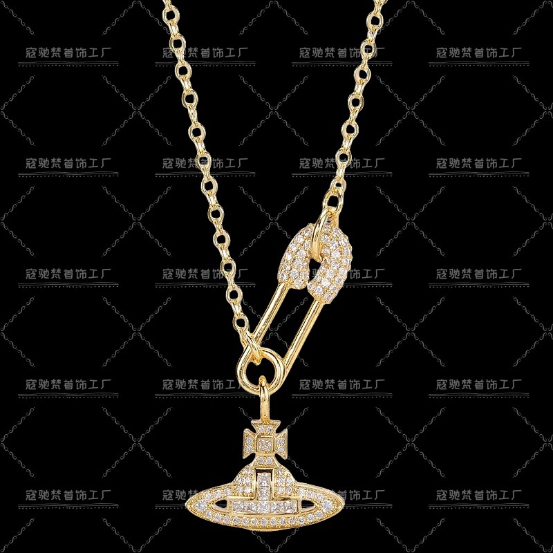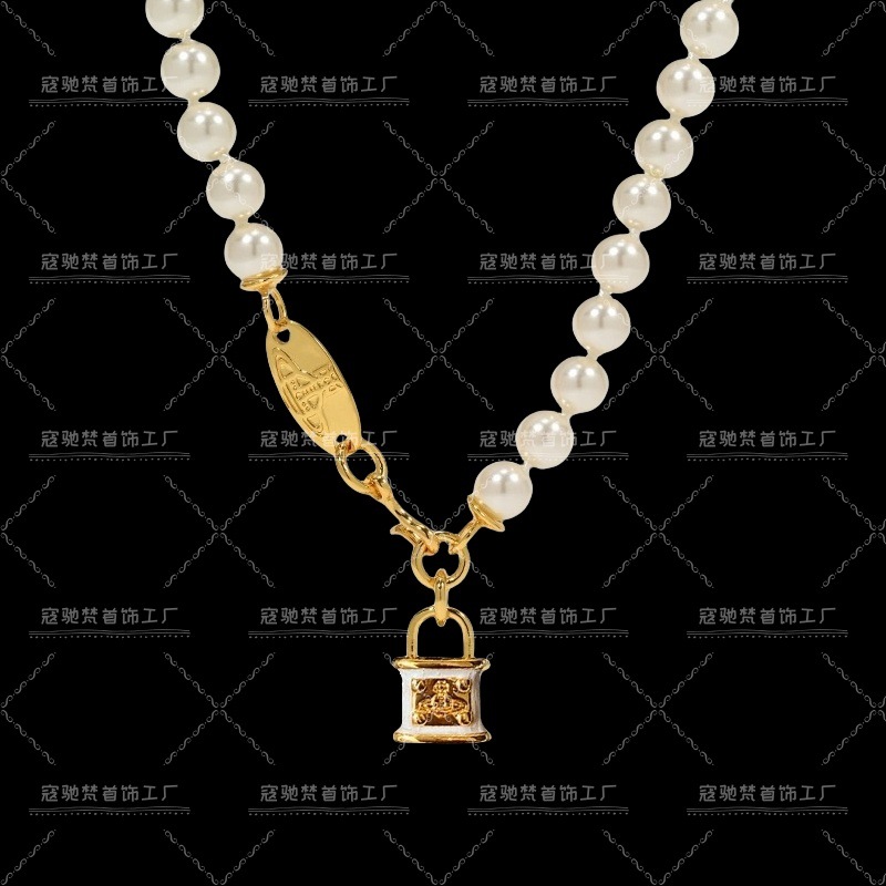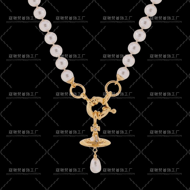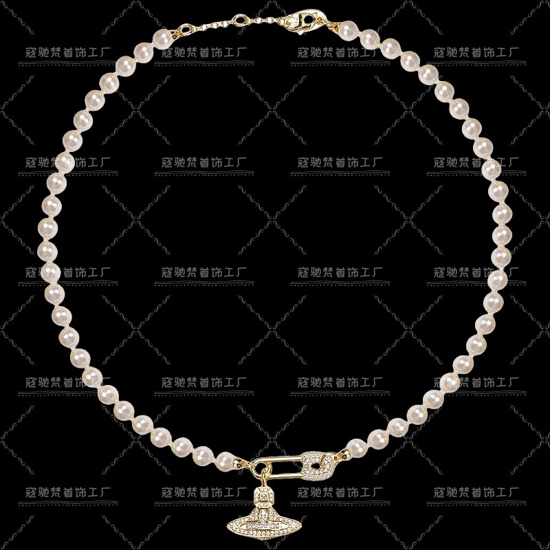 Color: 【49】gold diamond saturn oval brand t-buckle pearl necklace