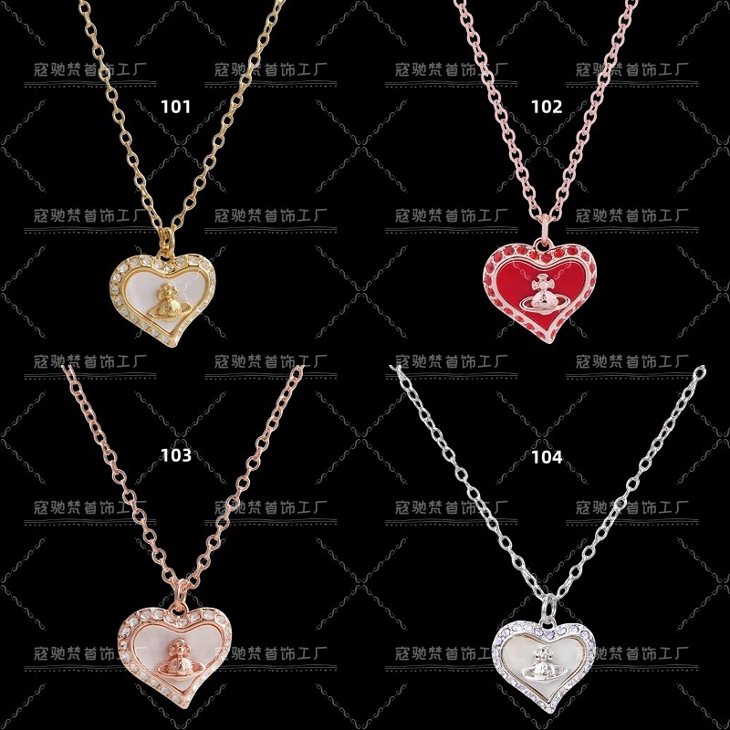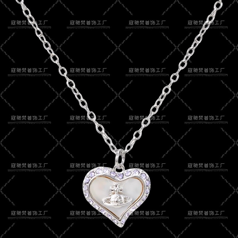 Color: 【55】silver one arrow through heart saturn zircon necklace
