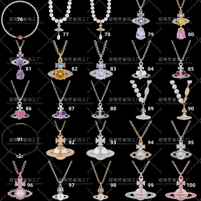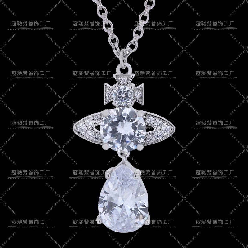 Color: 【43】silver water drop crystal flying saucer saturn necklace