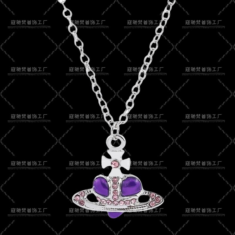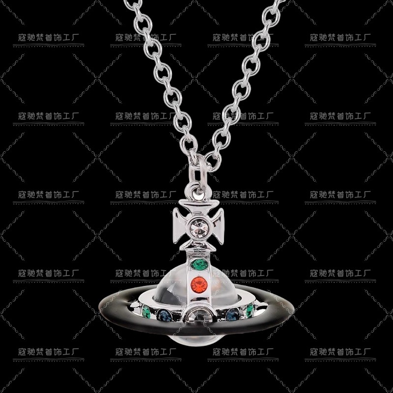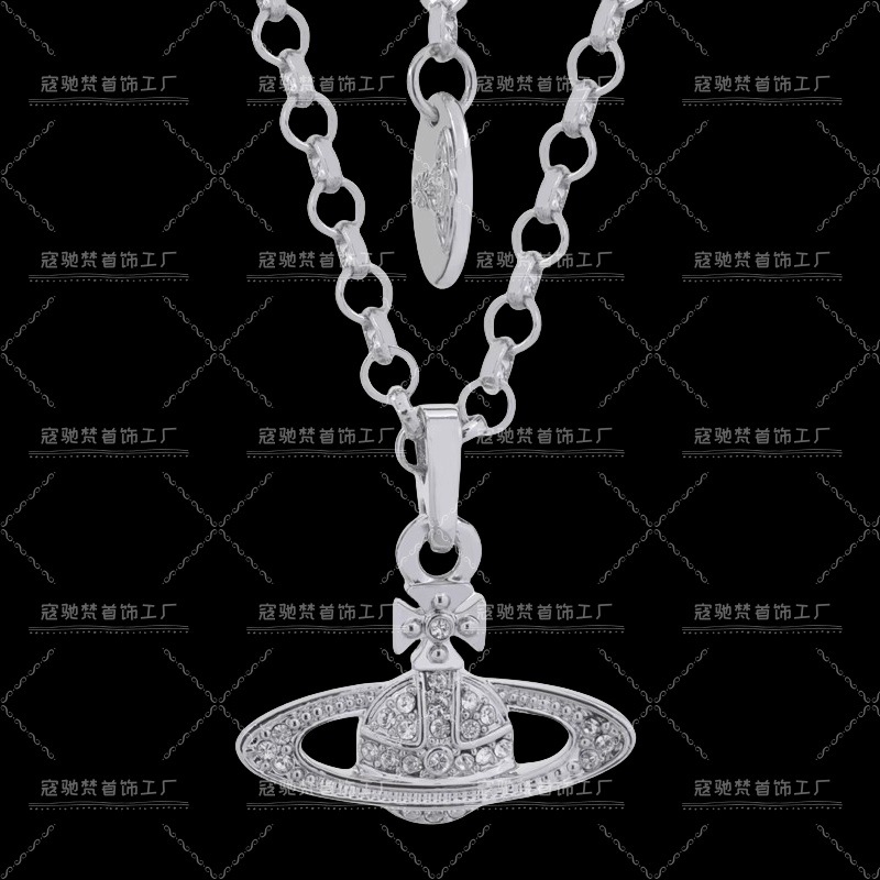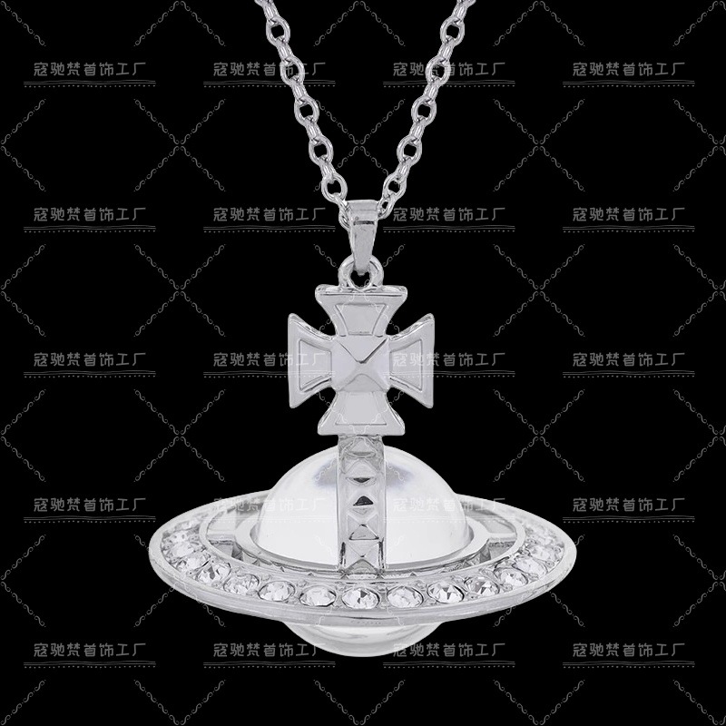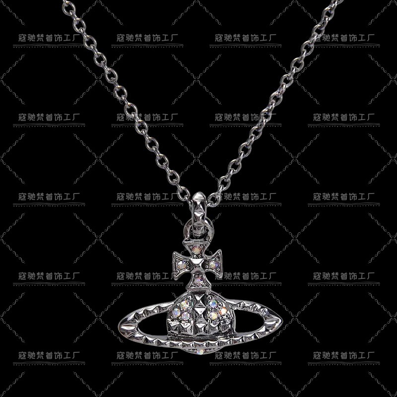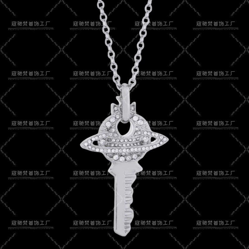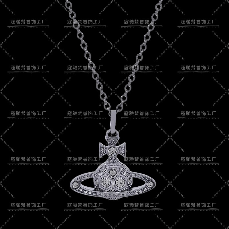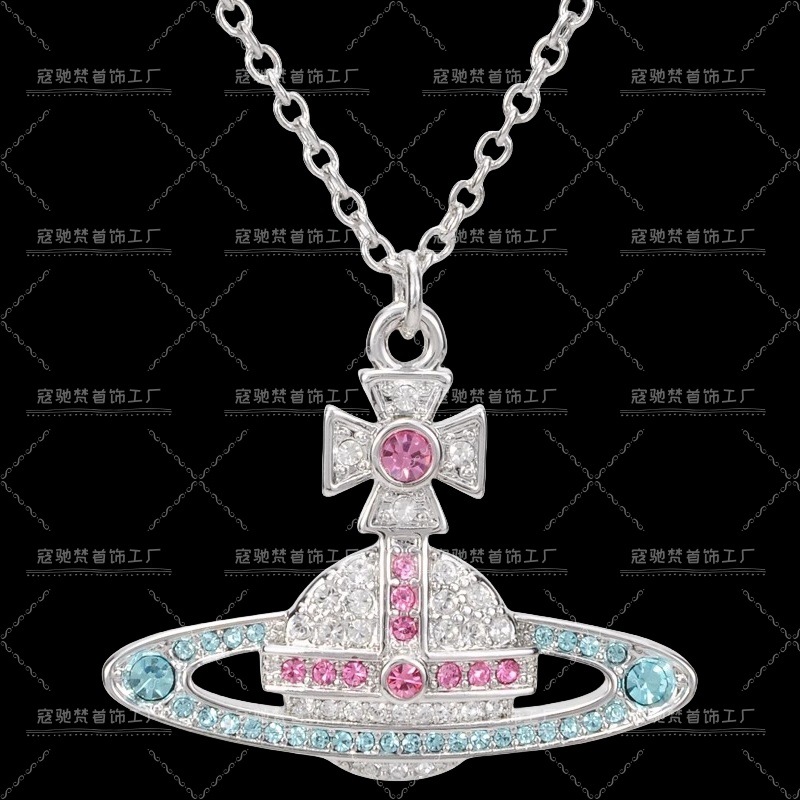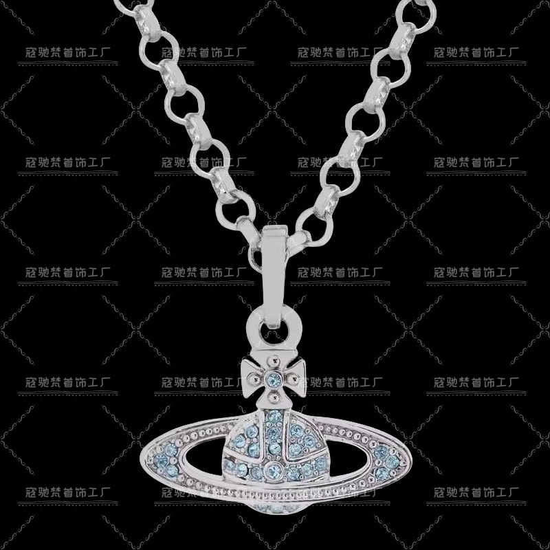 Color: 【48】silver gray blue full diamond classic saturn necklace