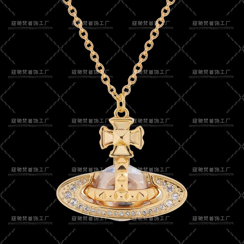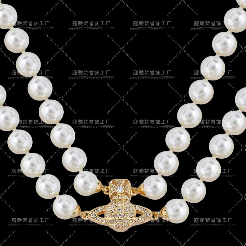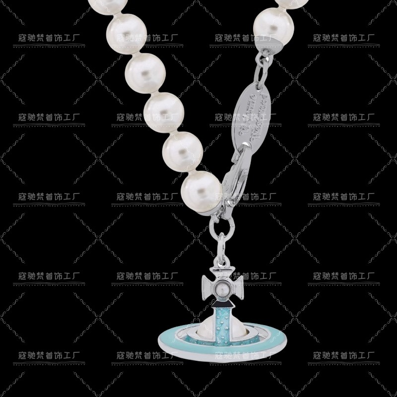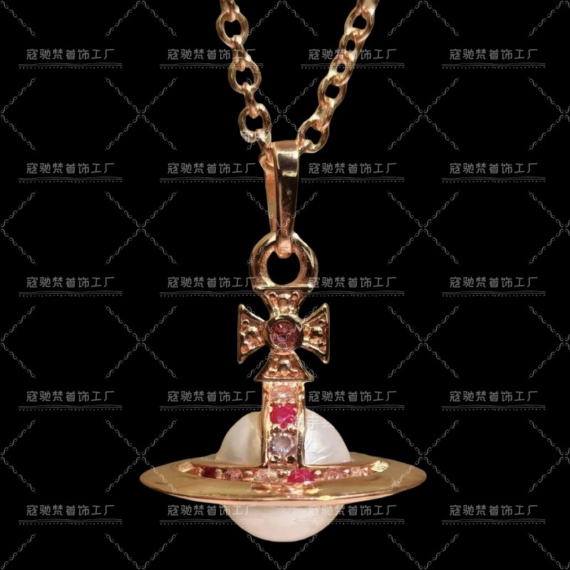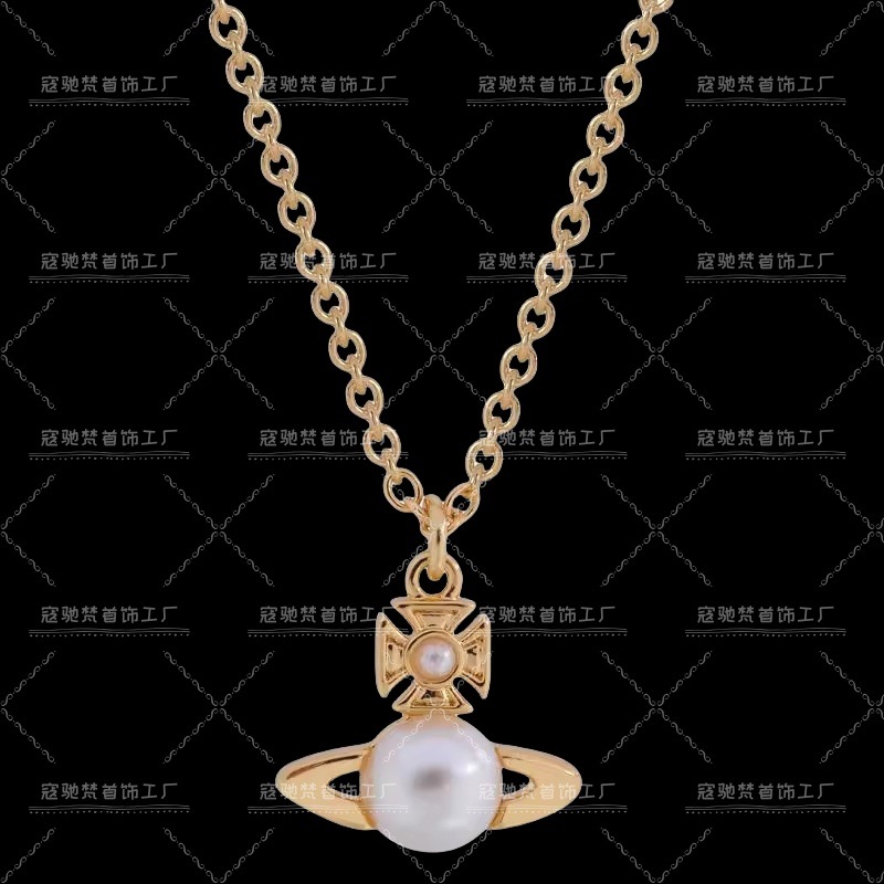 Color: 【22】gold powder enamel three-dimensional saturn pearl necklace