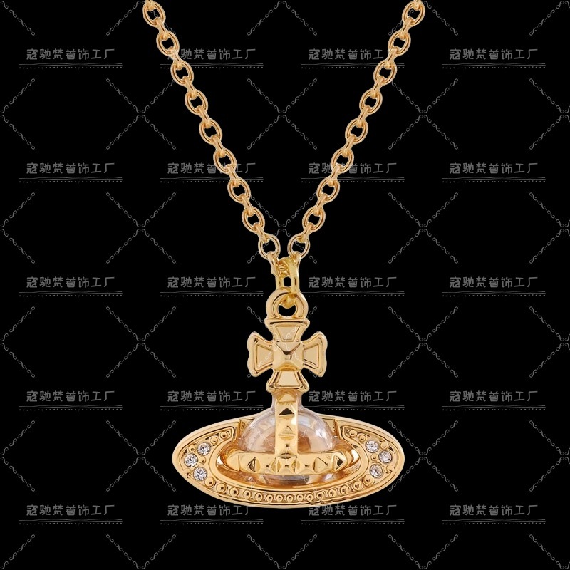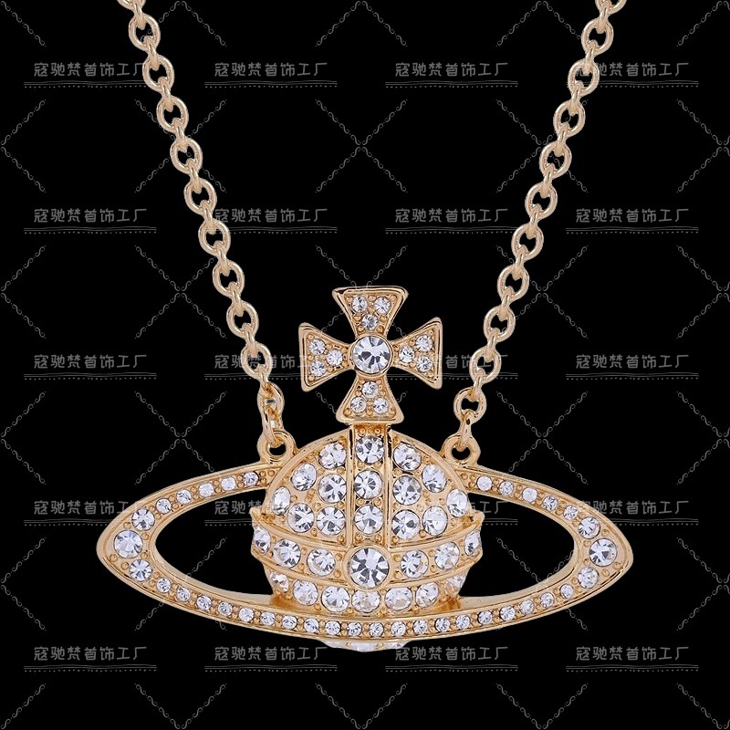 Color: 【92】gold full diamond three-dimensional transparent bead saturn necklace/large size