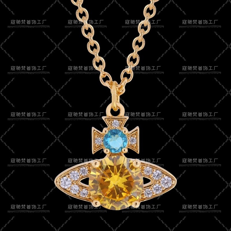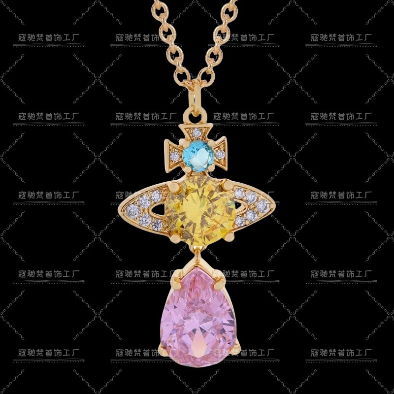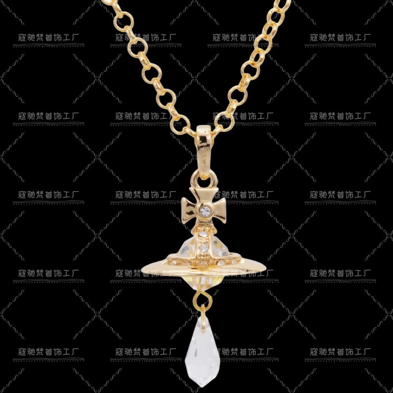 Color: 【42】golden water drop crystal flying saucer saturn necklace