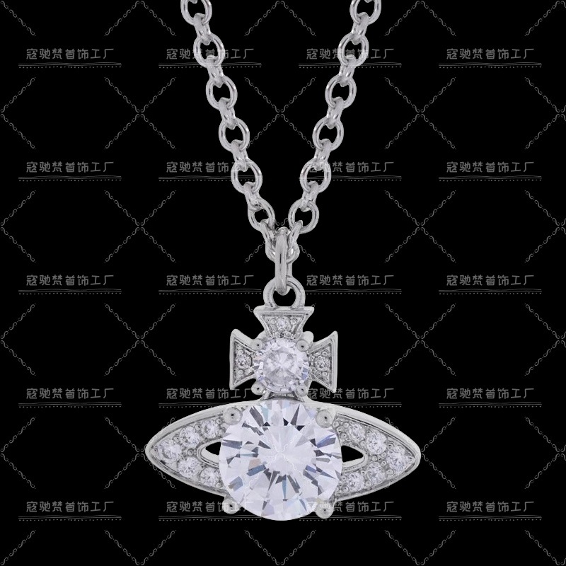 Color: 【95】silver full diamond lace saturn zircon necklace
