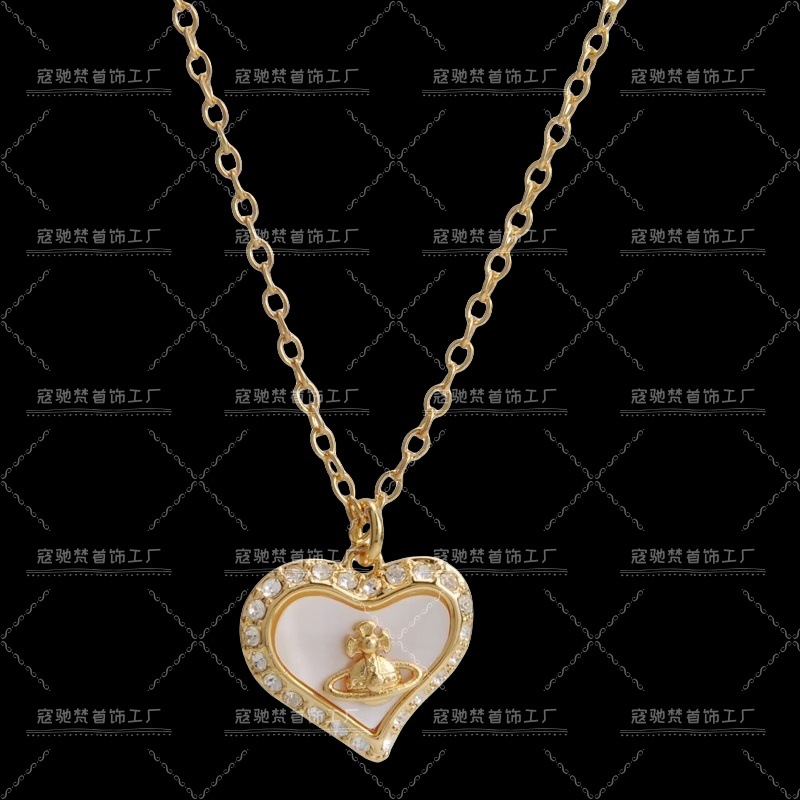 Color: 【94】gold full diamond lace saturn zircon necklace