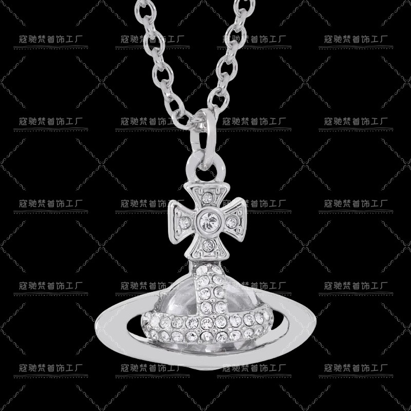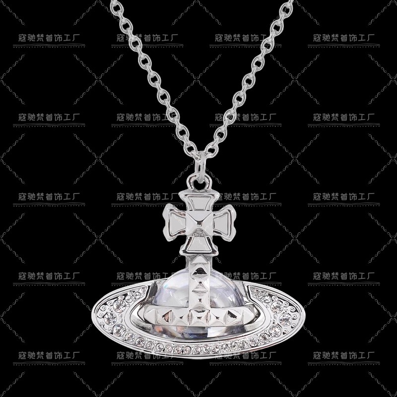 Color: 【93】silver full diamond three-dimensional transparent bead saturn necklace/large size