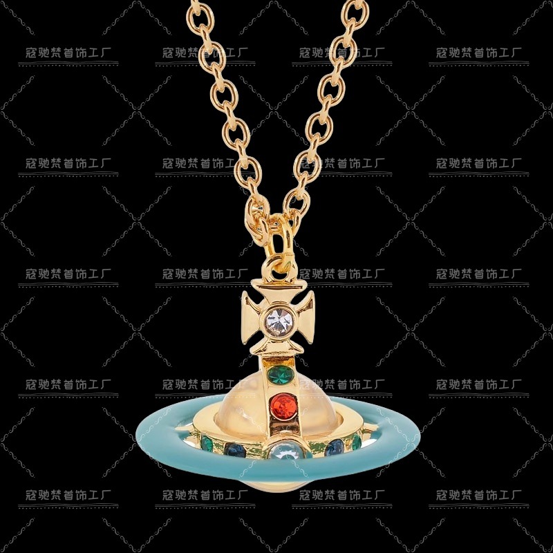 Color: 【24】gold and green enamel three-dimensional saturn pearl necklace