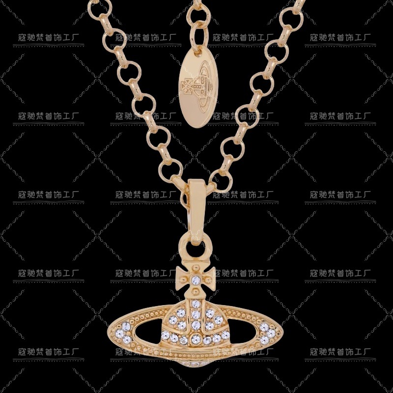 Color: 【33】gold three-dimensional rivet full diamond saturn half ball necklace/small size