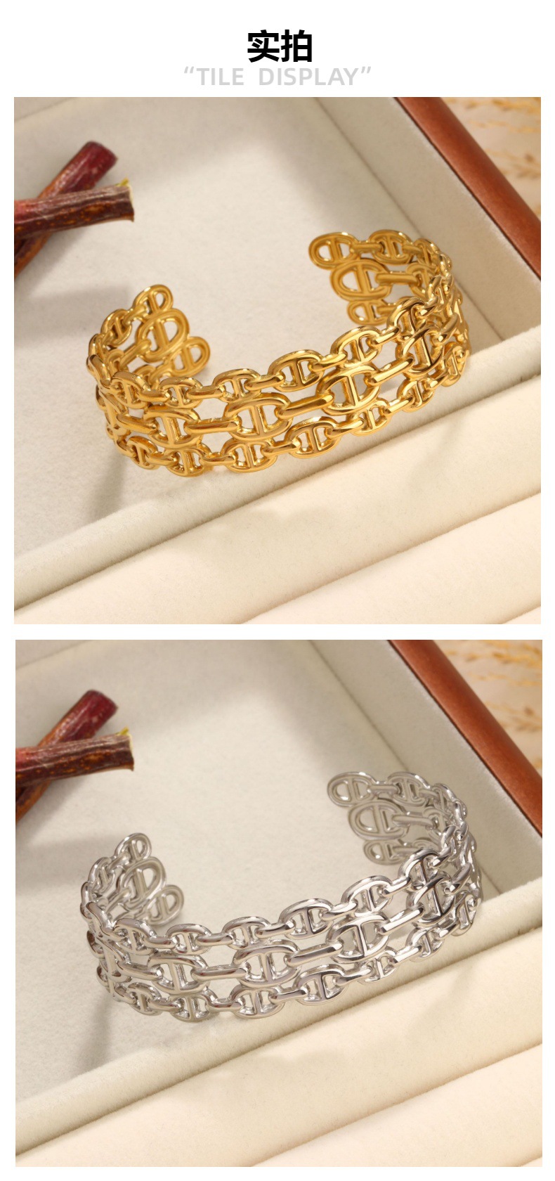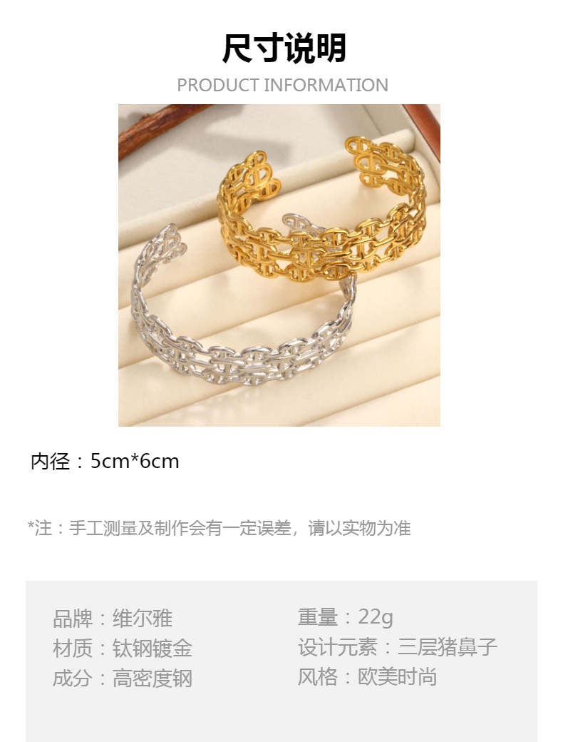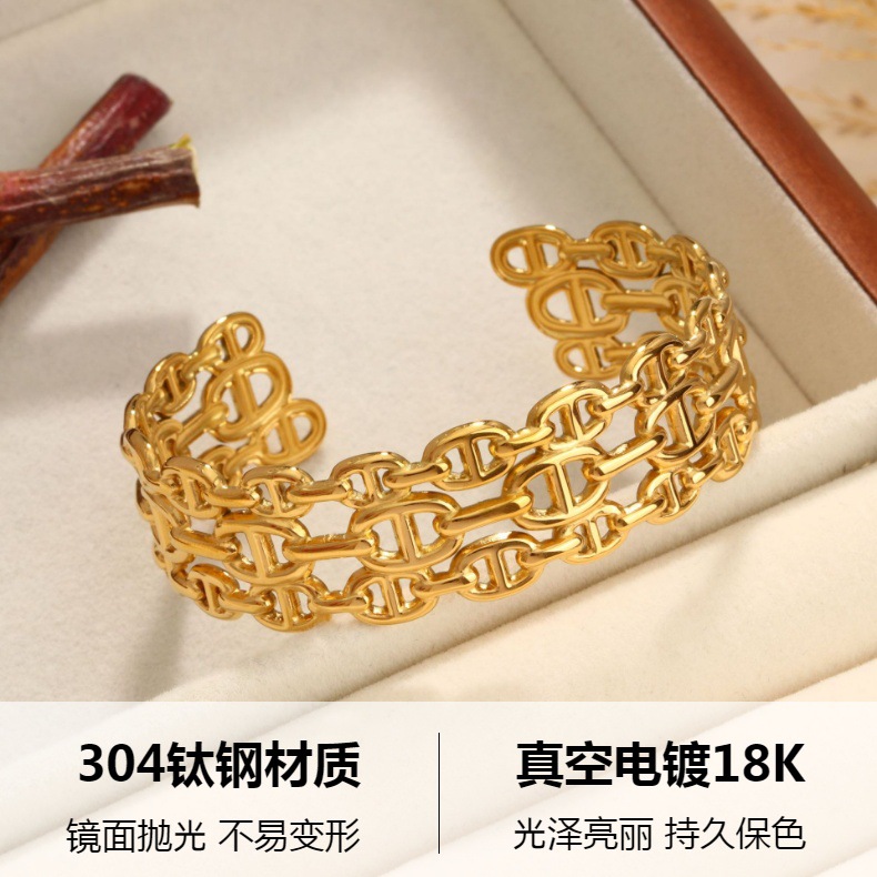 Cross-border hot sale stainless steel C- shaped open pig nose bracelet vacuum plating 18K gold stainless steel jewelry manufacturers