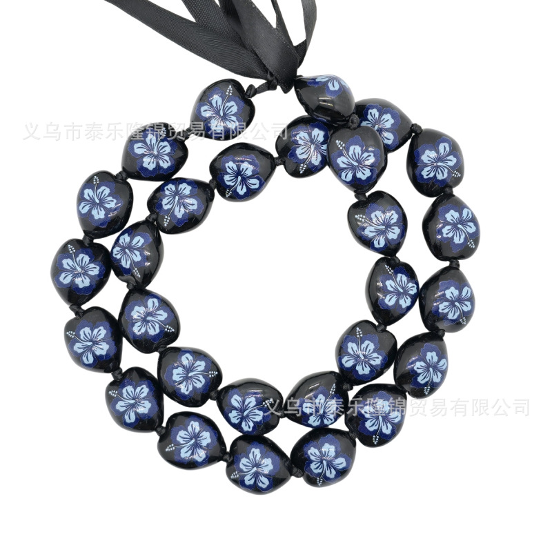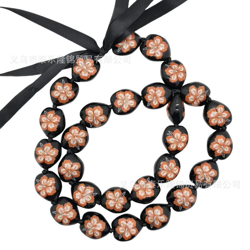 Island Woven Garland Imitation Nut Kukui Nut Leis Necklace Hawaiian Party Necklace Graduation Honor Flower