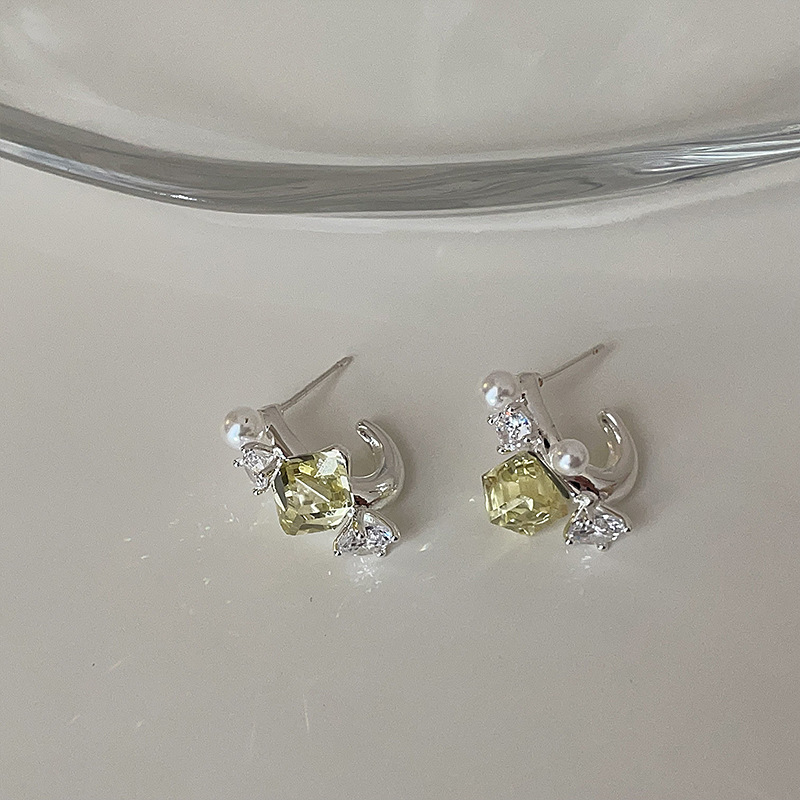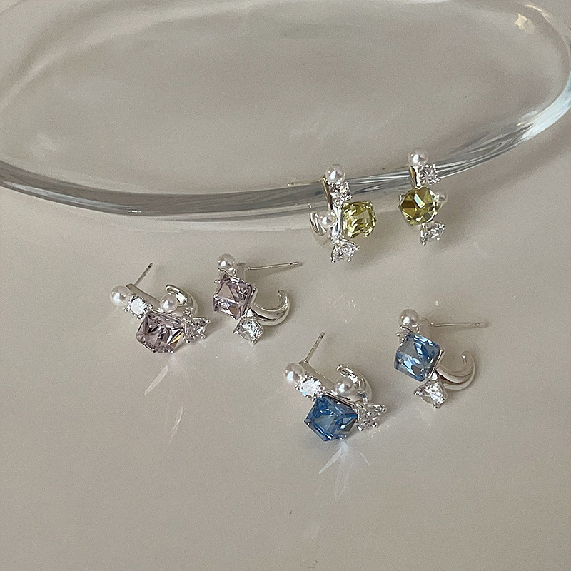 High-grade color sugar crystal pearl earrings female personality niche unique exquisite white fashion earrings earrings