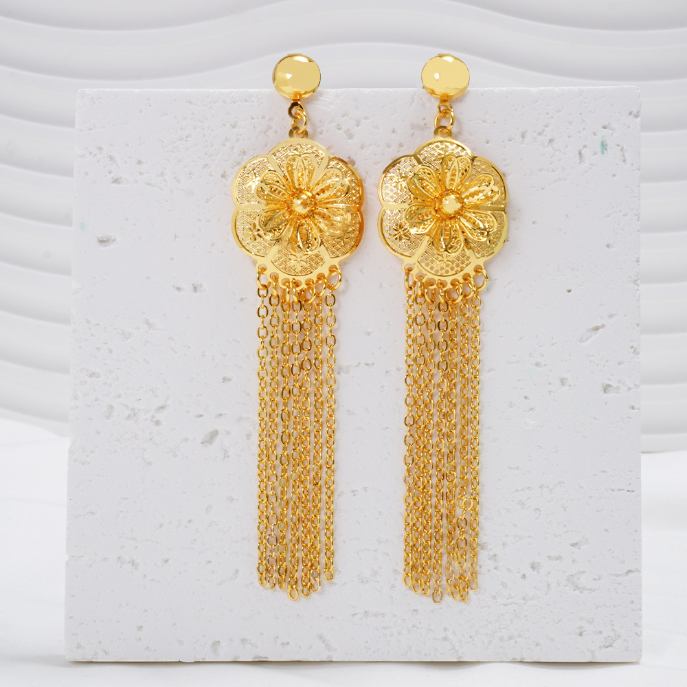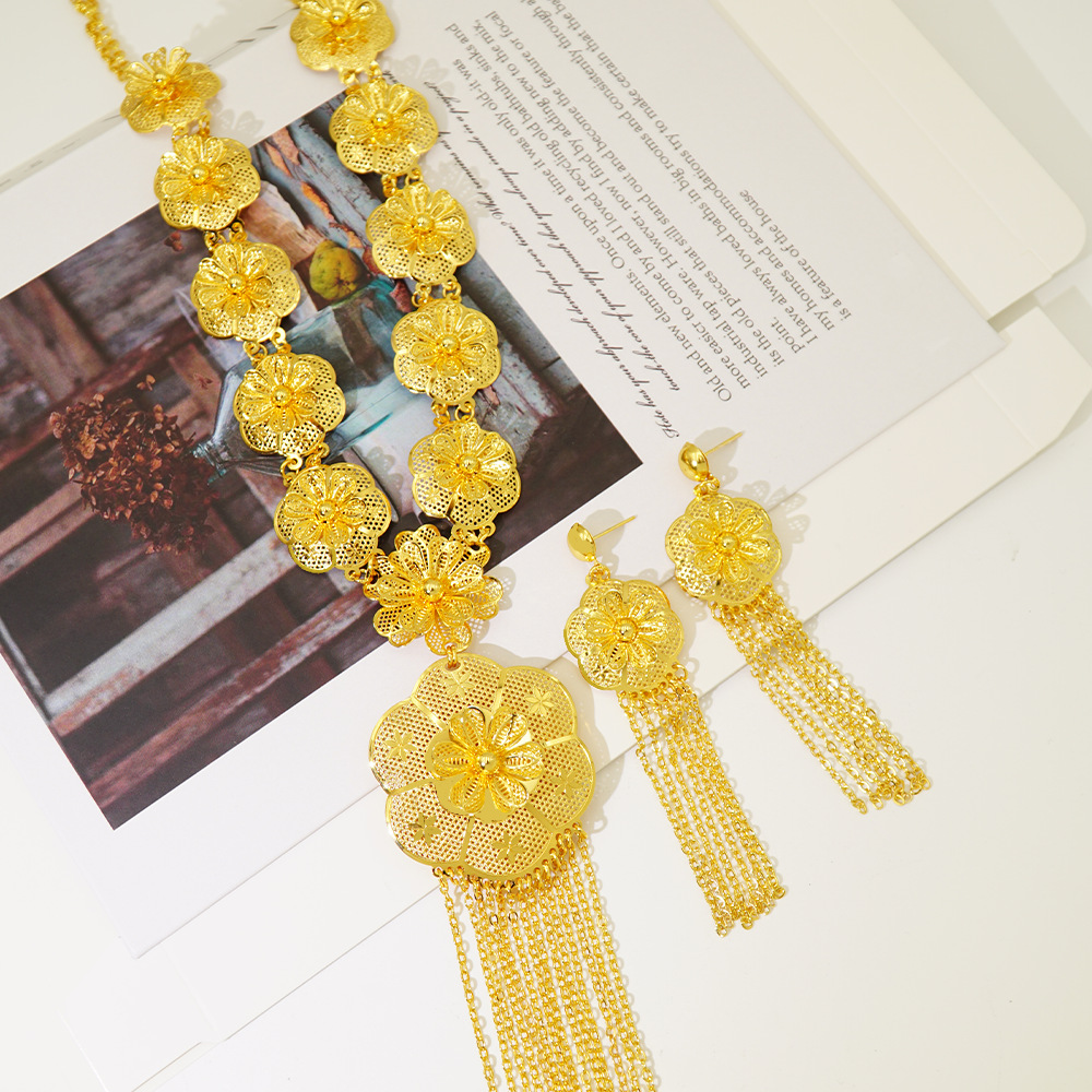 Middle East Gold Plated Jewelry suit 2 Piece Set India Bride Wedding Jewelry Necklace Earrings Gold Plated No Falling Wholesale