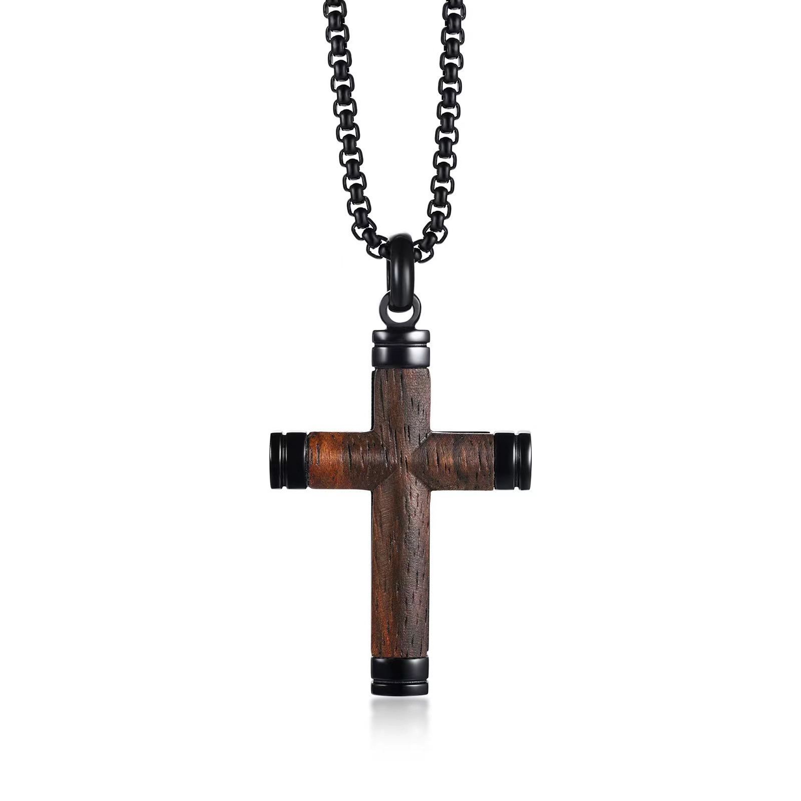 Cross-Border Hot Selling Solid Wood Cross Pendant Niche Personality Summer Men's Necklace Wholesale