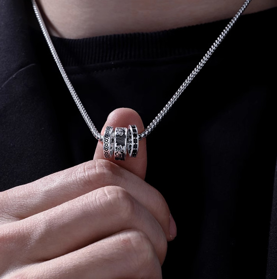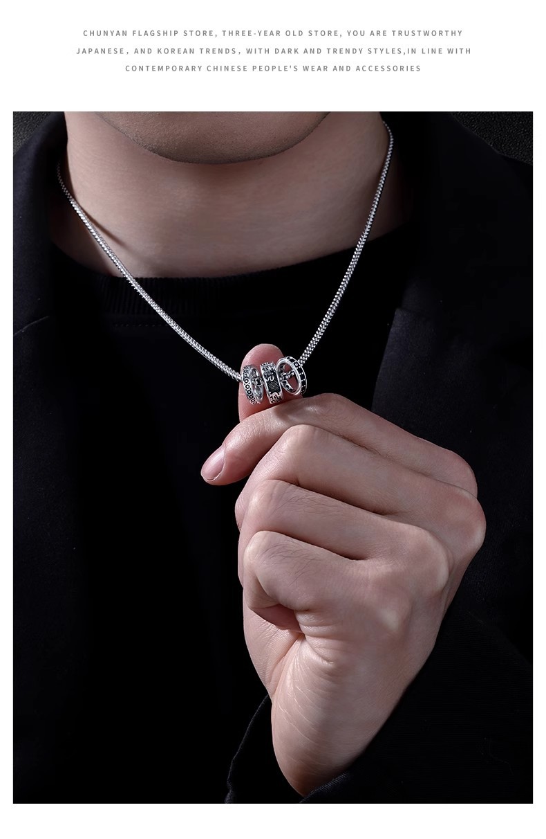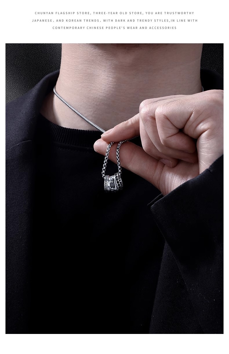 Retro Personalized Pixiu Bead Necklace Men's High-end All-match Small Waist Pendant Hip-hop Woolen Chain