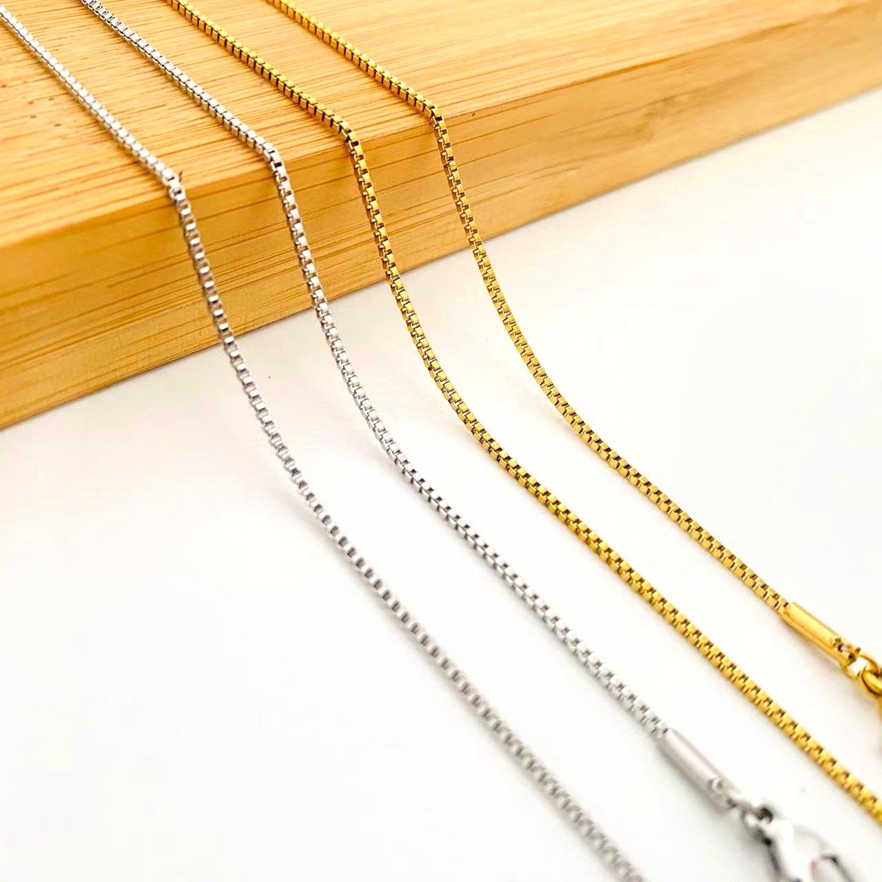 Factory Direct Sales Titanium Steel Box Chain Necklace Bare Chain Square Chain Single Chain Decoration European and American Hot Selling Personalized Hip-Hop Style