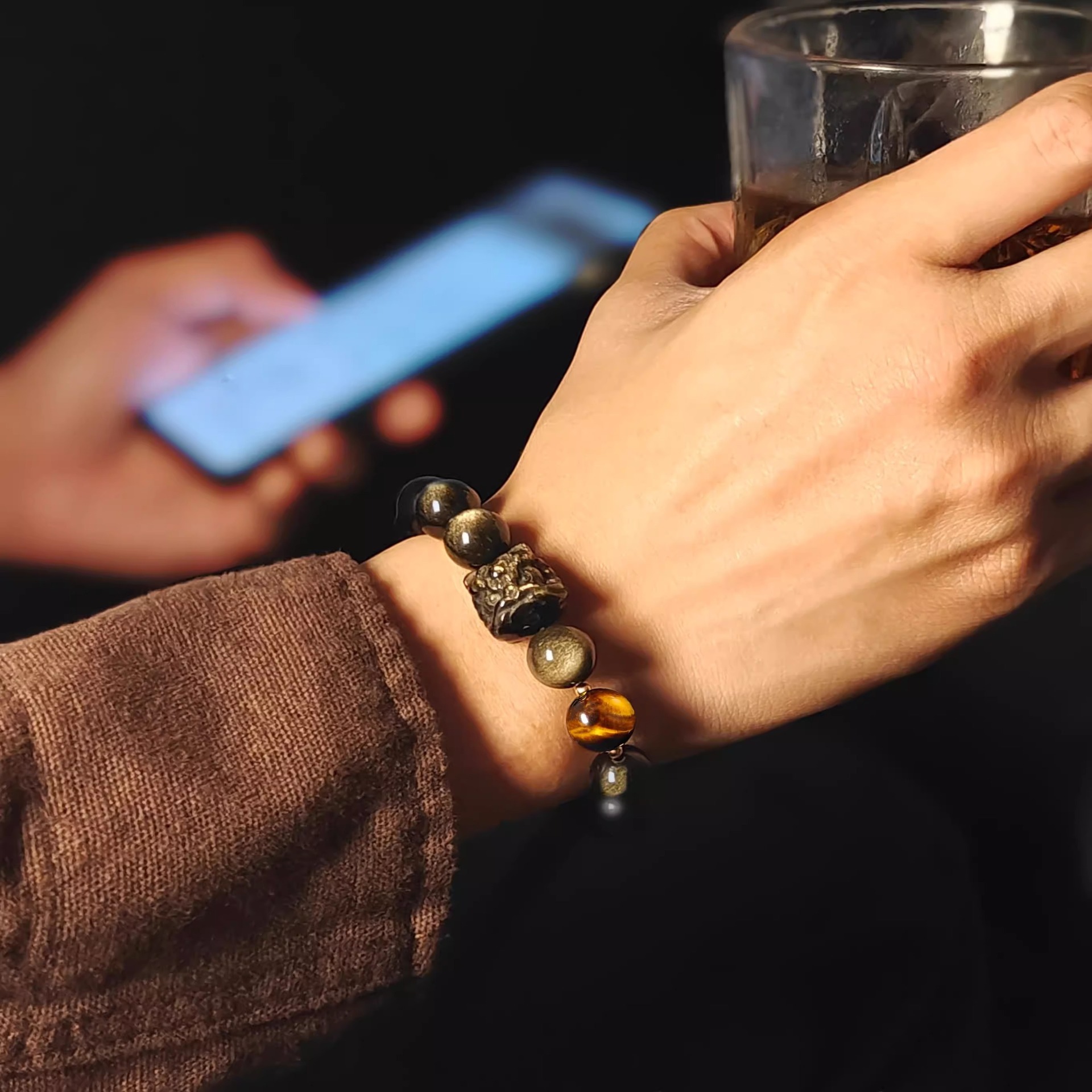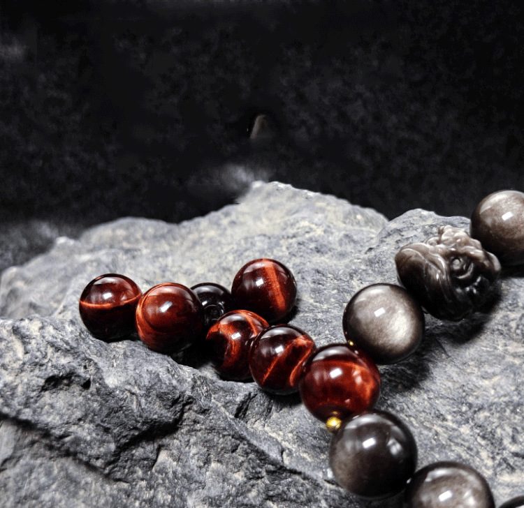 Color: Silver lion + obsidian 12mm + tiger eye