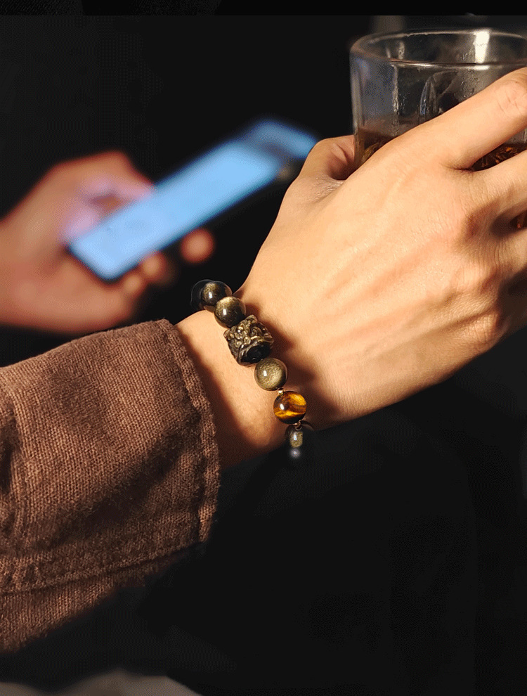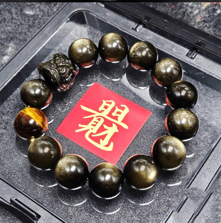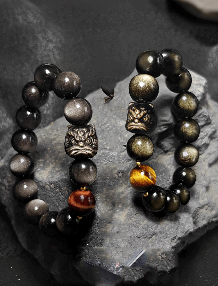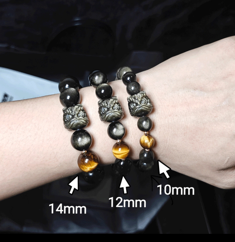 Color: Lion awakening gold obsidian 10mm+tiger eye