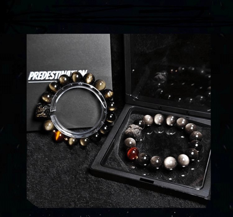 Color: Lion awakening silver obsidian 12mm+dragon crystal