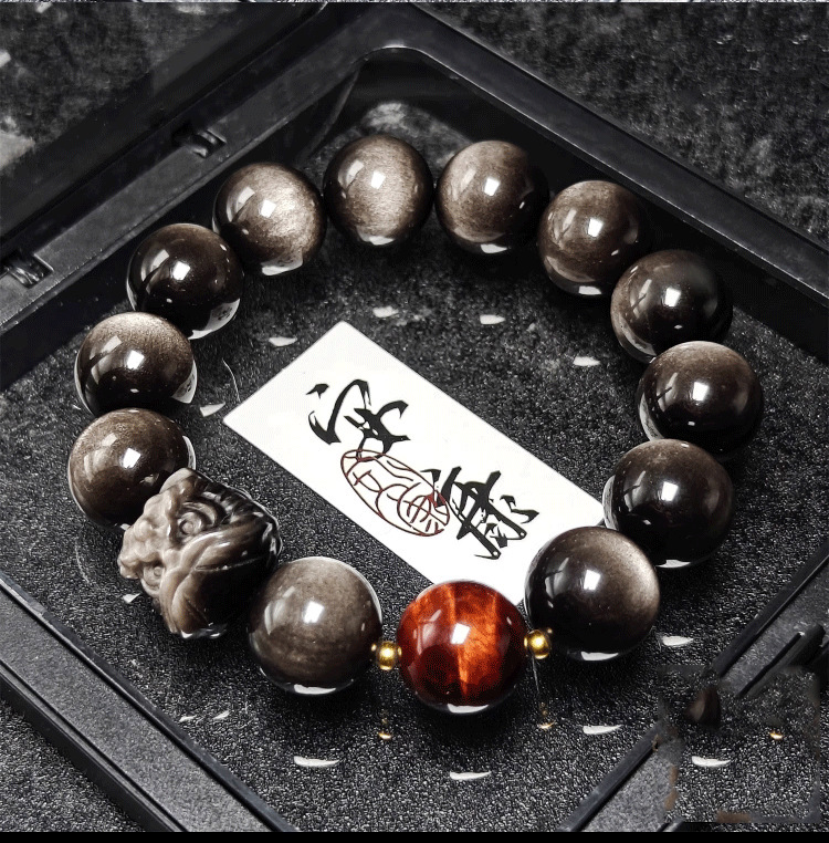 Color: Silver awakening lion + obsidian 12mm + dragon crystal