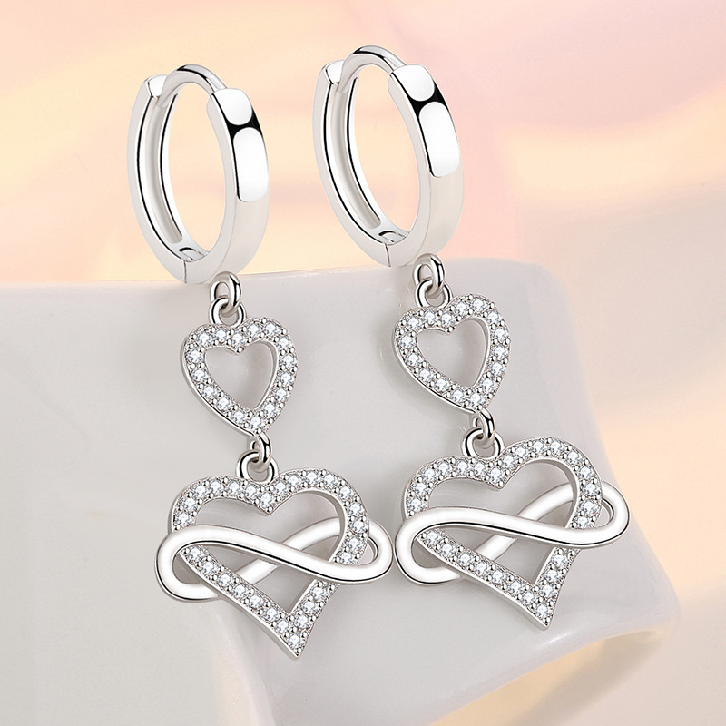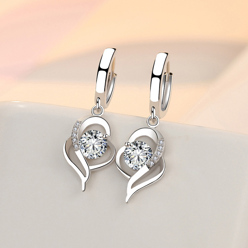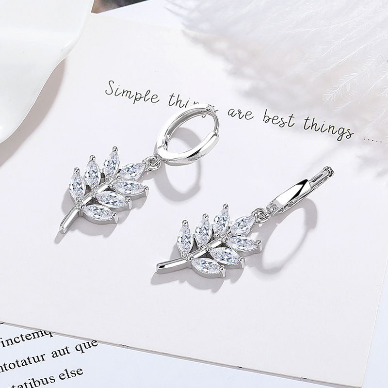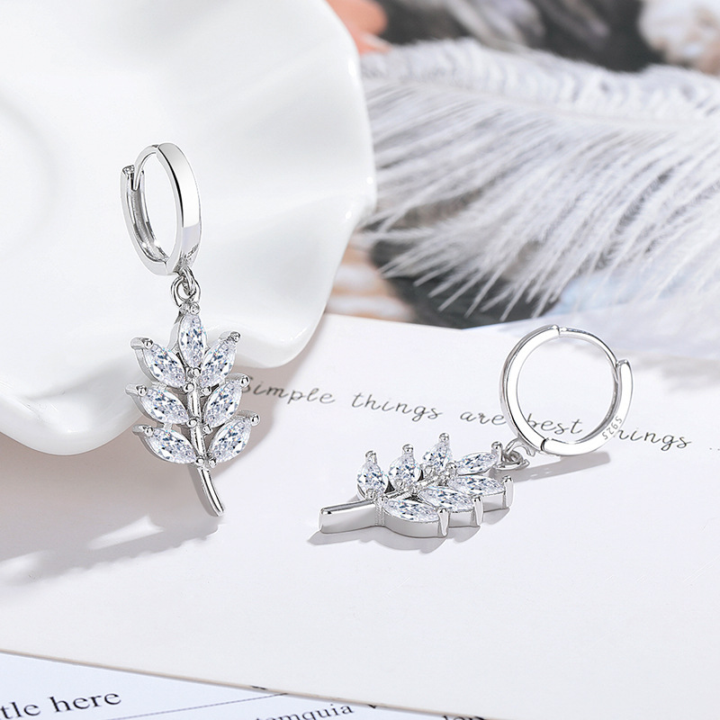 Cross-border Fashion Earrings Leaf Heart-shaped Zircon New Earrings Love Earrings All-match Trendy 925 Tremella Buckle