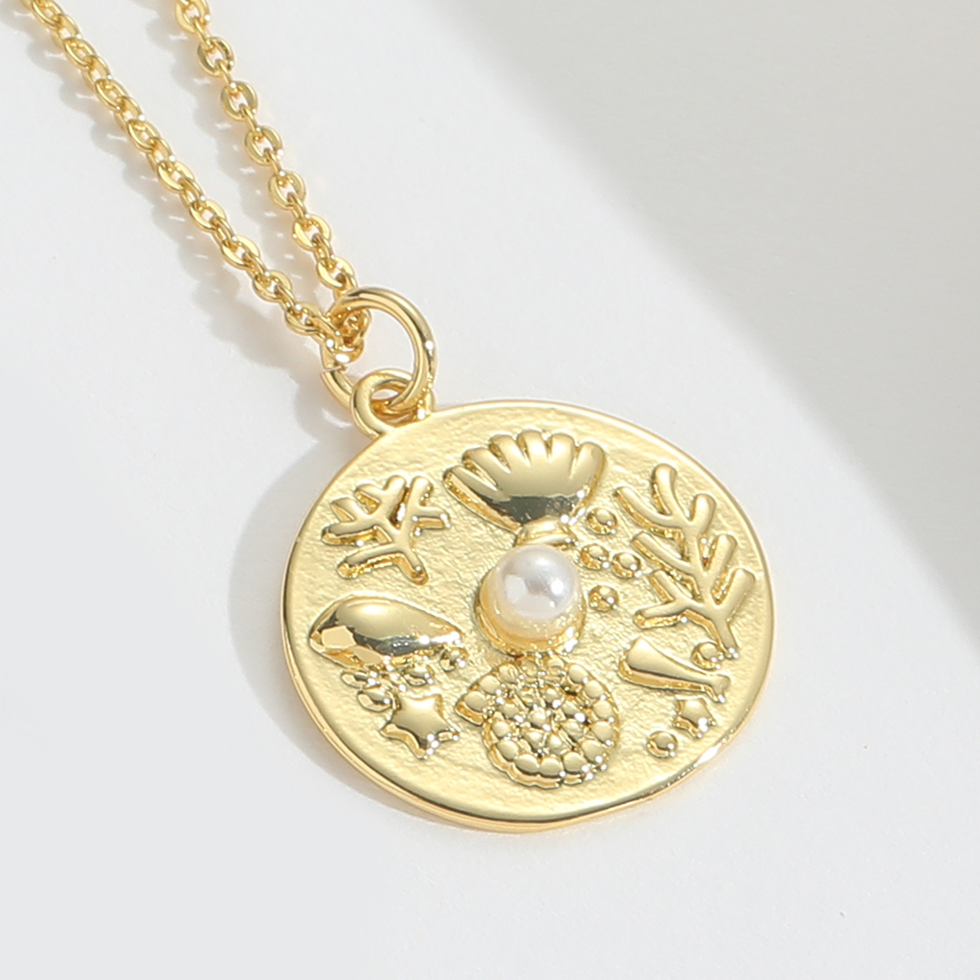 【品名】跨境热卖新款沙滩度假风爆款复古太阳设计吊坠项链几何圆盘女士