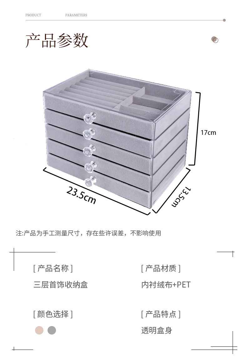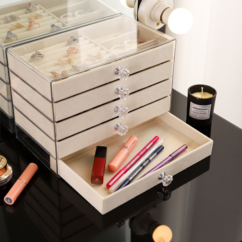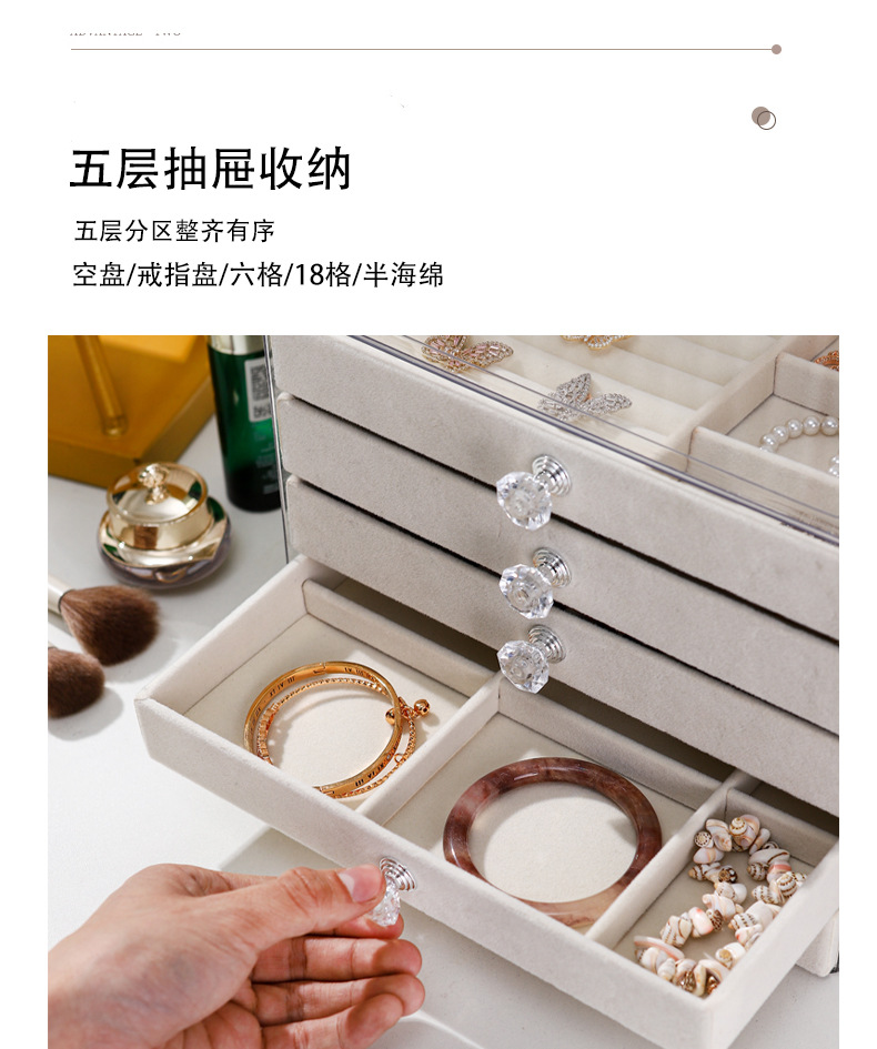 Jewelry Storage Box New Model Drawer-Type Necklace and Earring Multi-Layer Large Capacity Earring and Hand Jewelry Box Gift Box Five-Layer