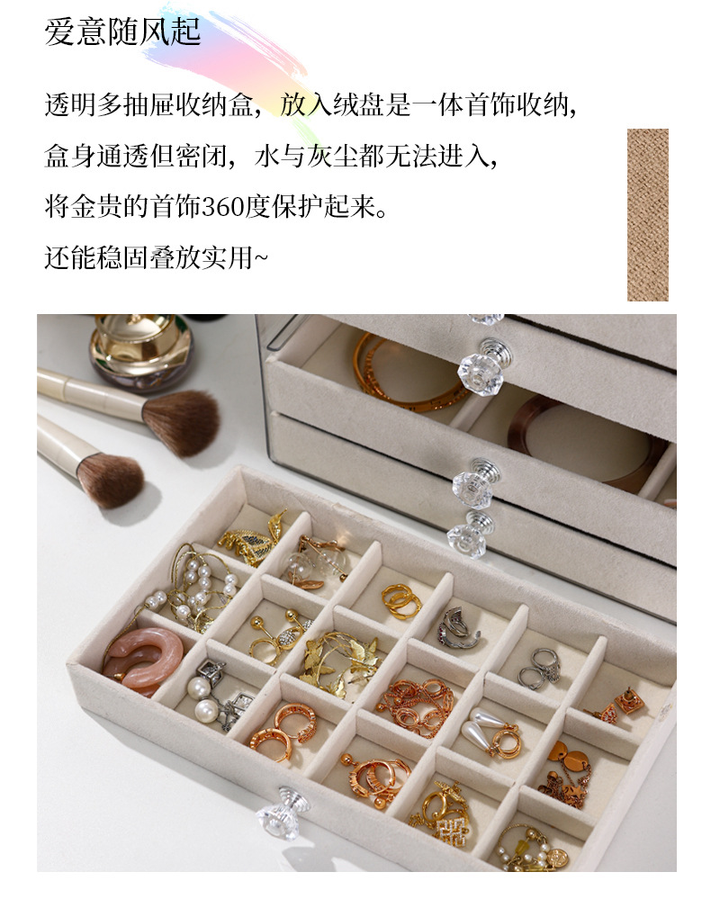 [beige/multi-grid style] five-layer jewelry box, 3 layers or more