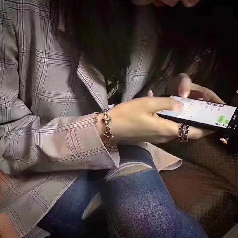 Trendy jewelry square cross cross bracelet Thai silver vintage men's and women's horseshoe buckle does not fade