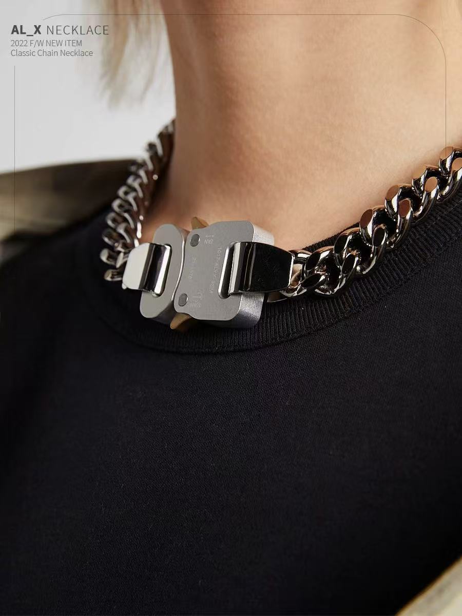 Trendy European and American Hip-Hop Thick Chain Metal Lock Necklace Cool High Street Short Biker Style Functional Clavicle Chain