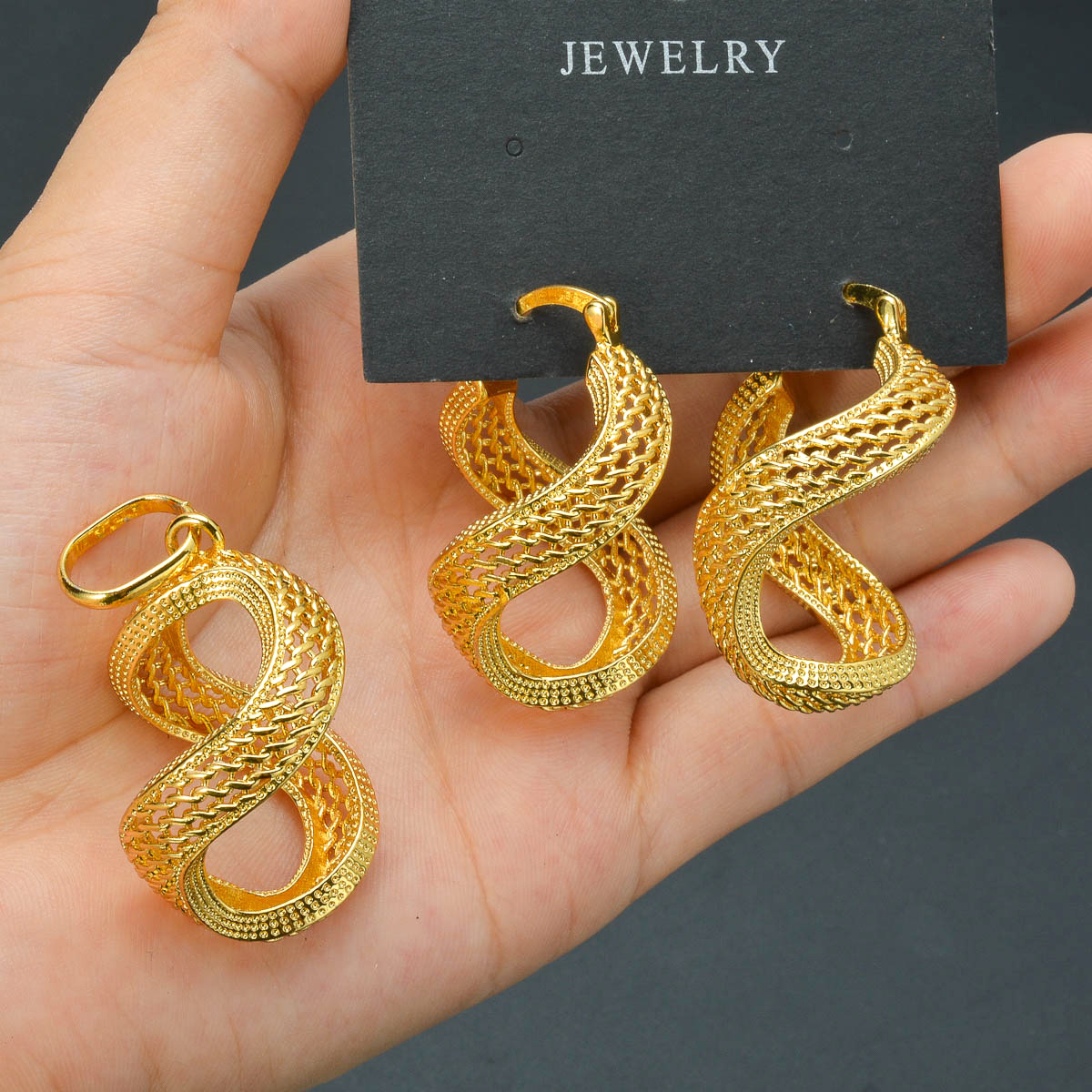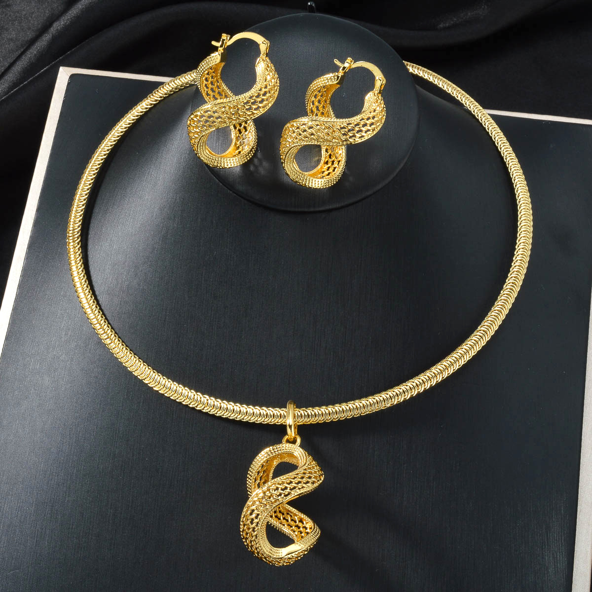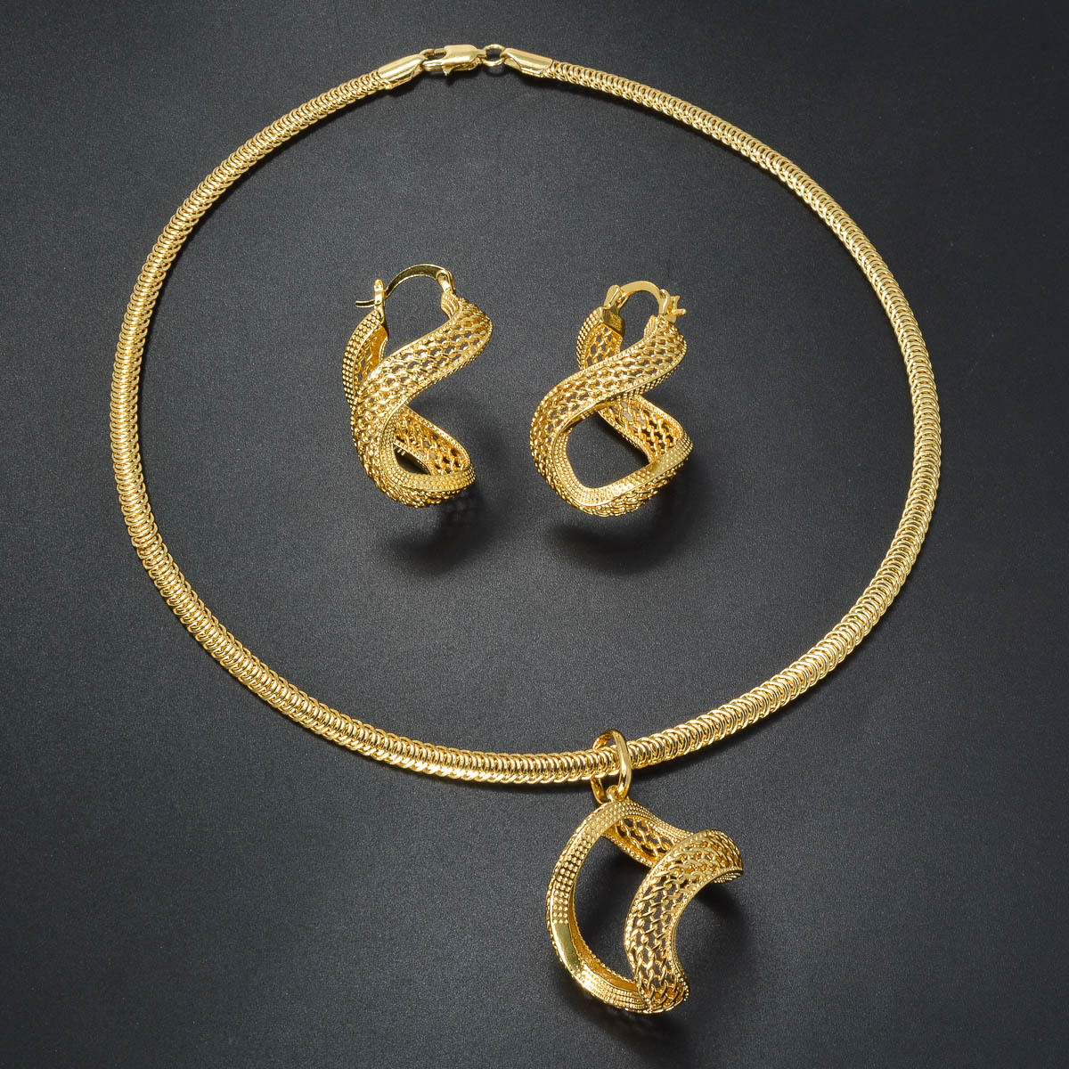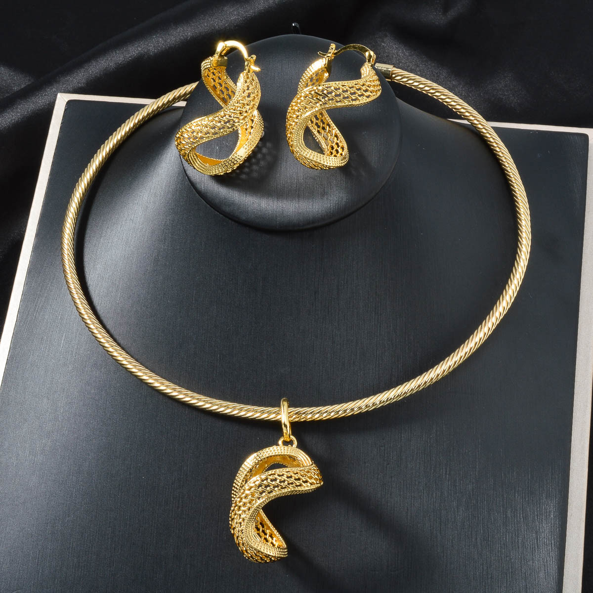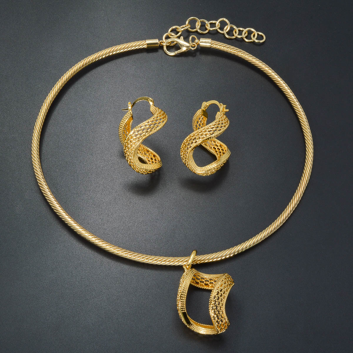 Dubai 18K Gold Bridal Jewelry Jewelry Set African Middle Eastern Women's Necklace Earrings Two-Piece Set Cross-Border Wholesale