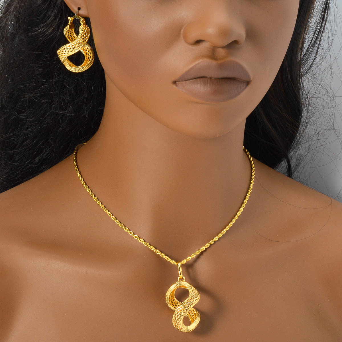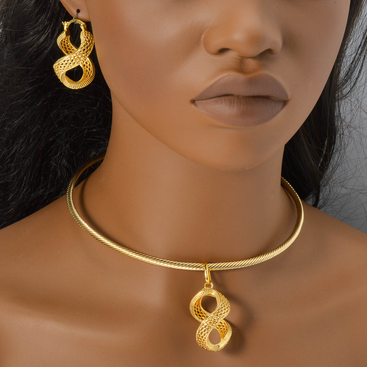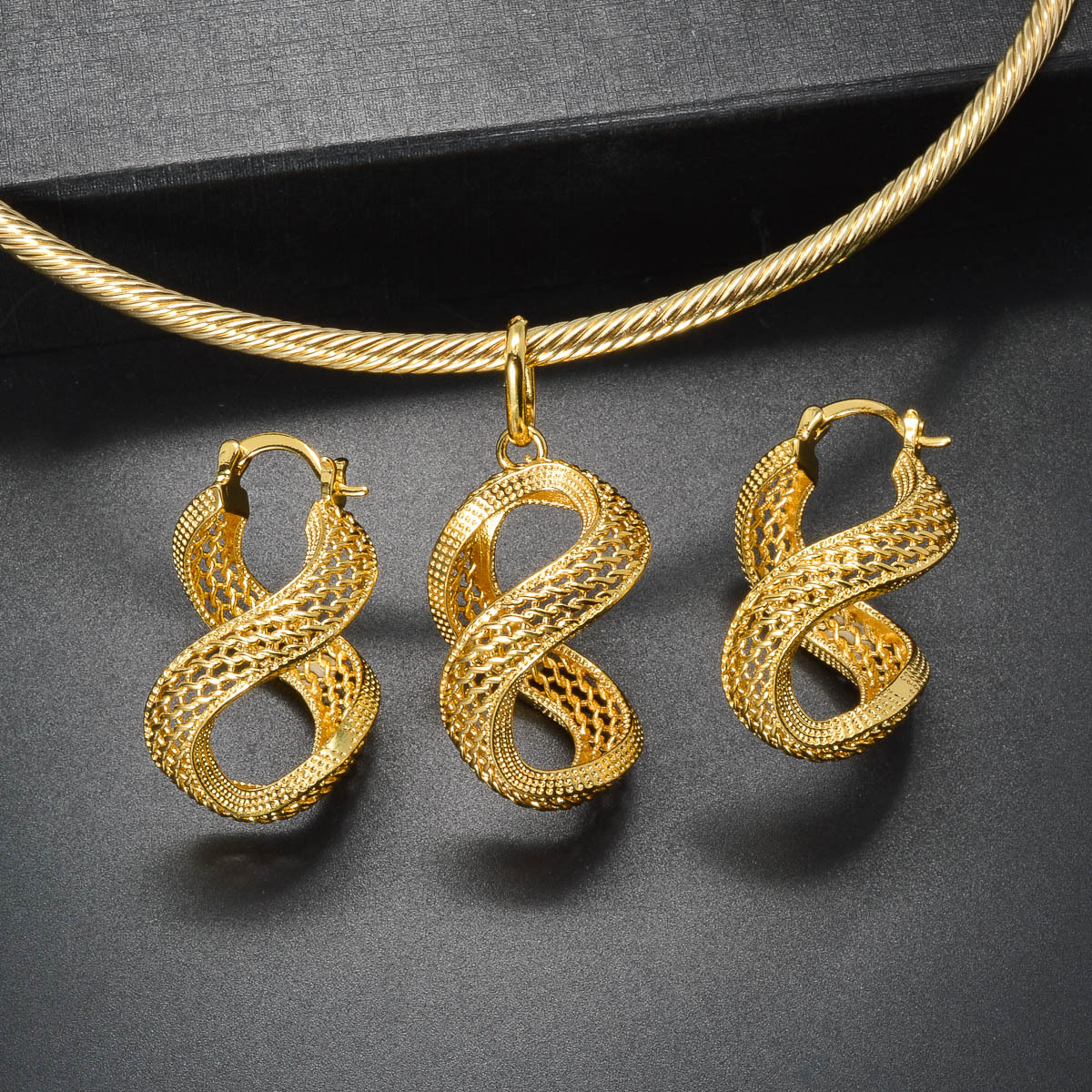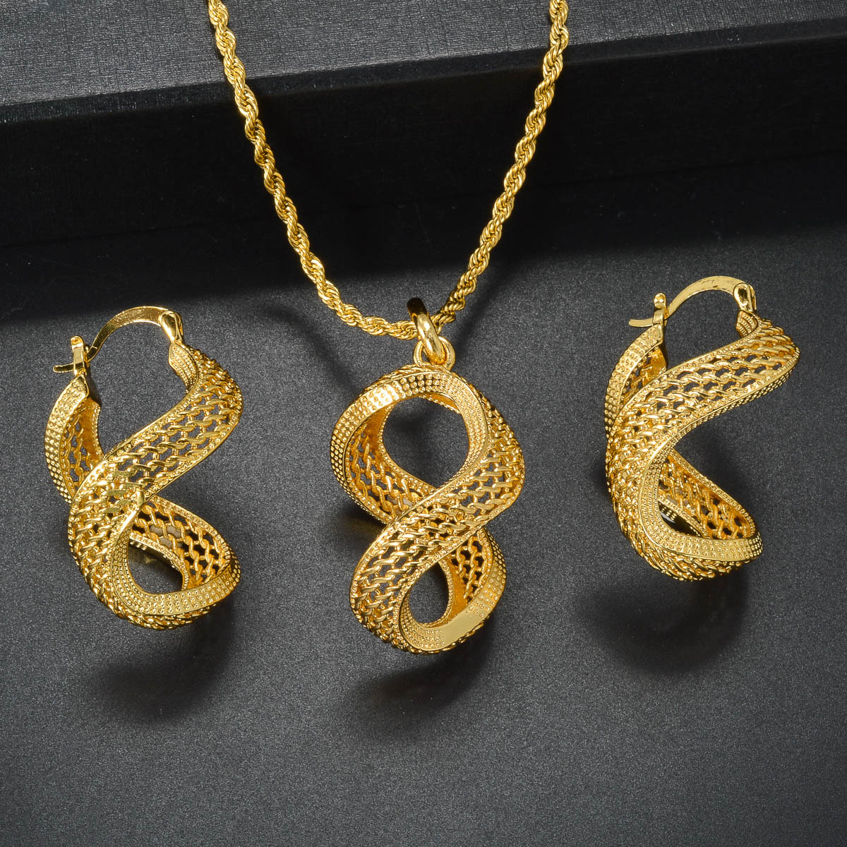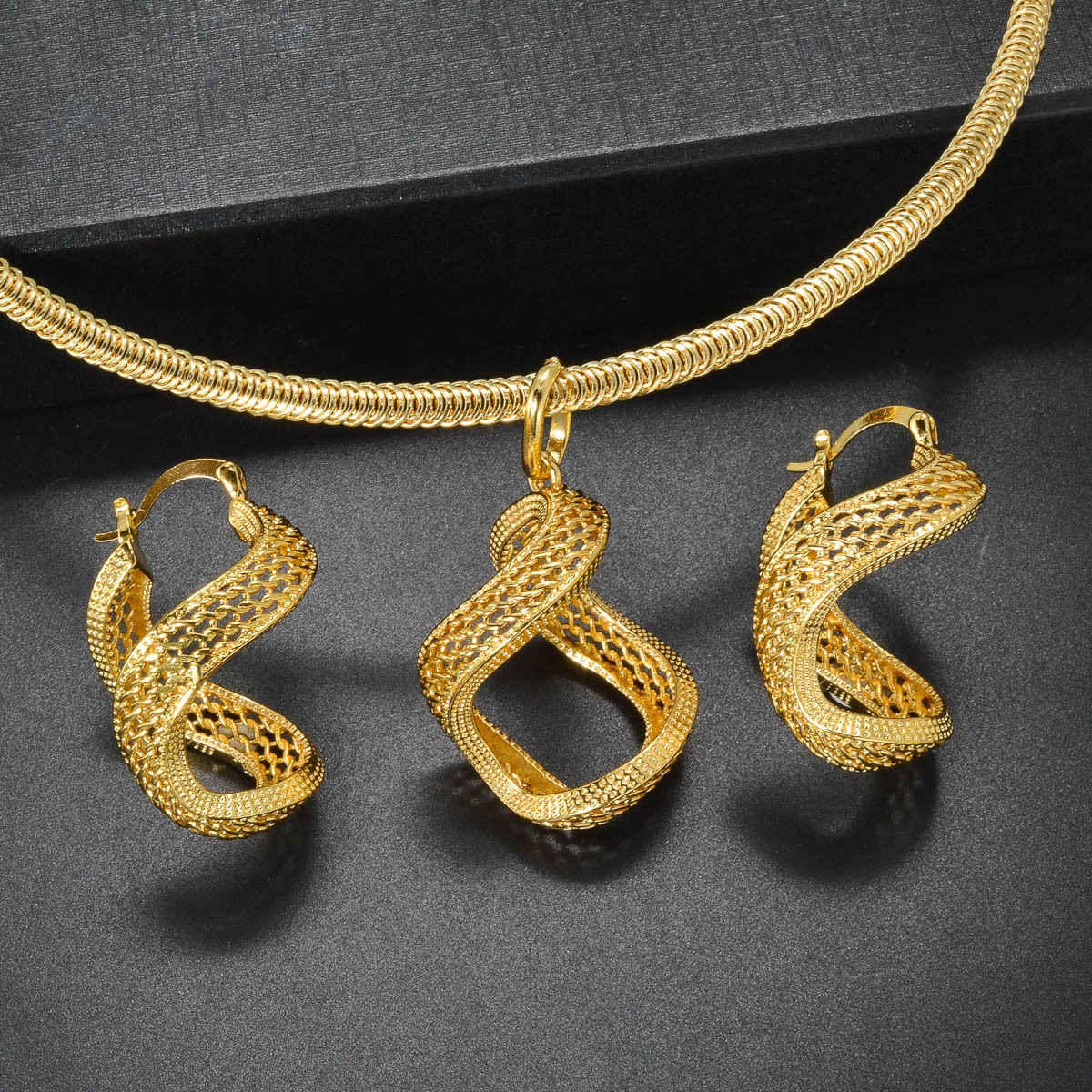 Dubai 18K Gold Bridal Jewelry Jewelry Set African Middle Eastern Women's Necklace Earrings Two-Piece Set Cross-Border Wholesale