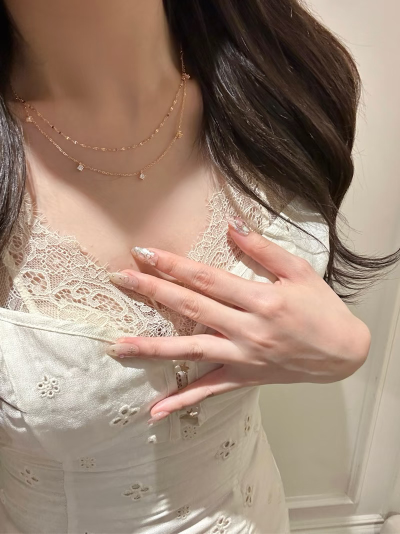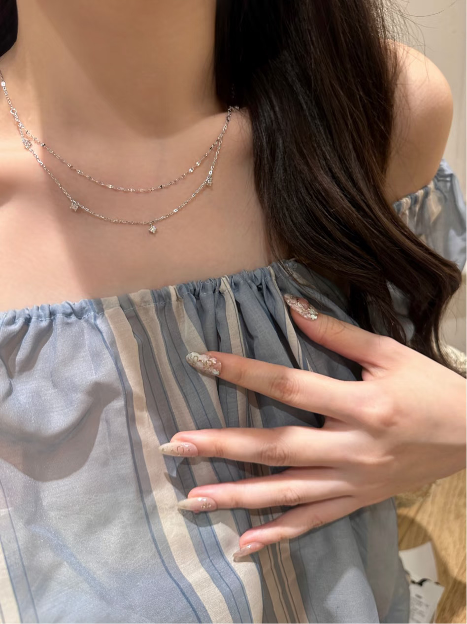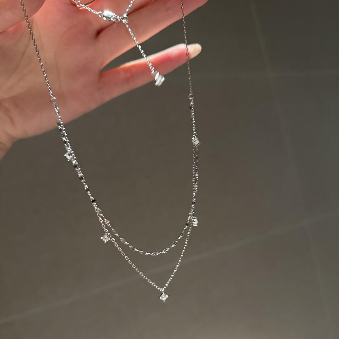 Xiaohongshu Same Style S925 Sterling Silver Double-Layer Necklace for Women Rose Gold Zircon Clavicle Chain Ins Light Luxury Style Stackable