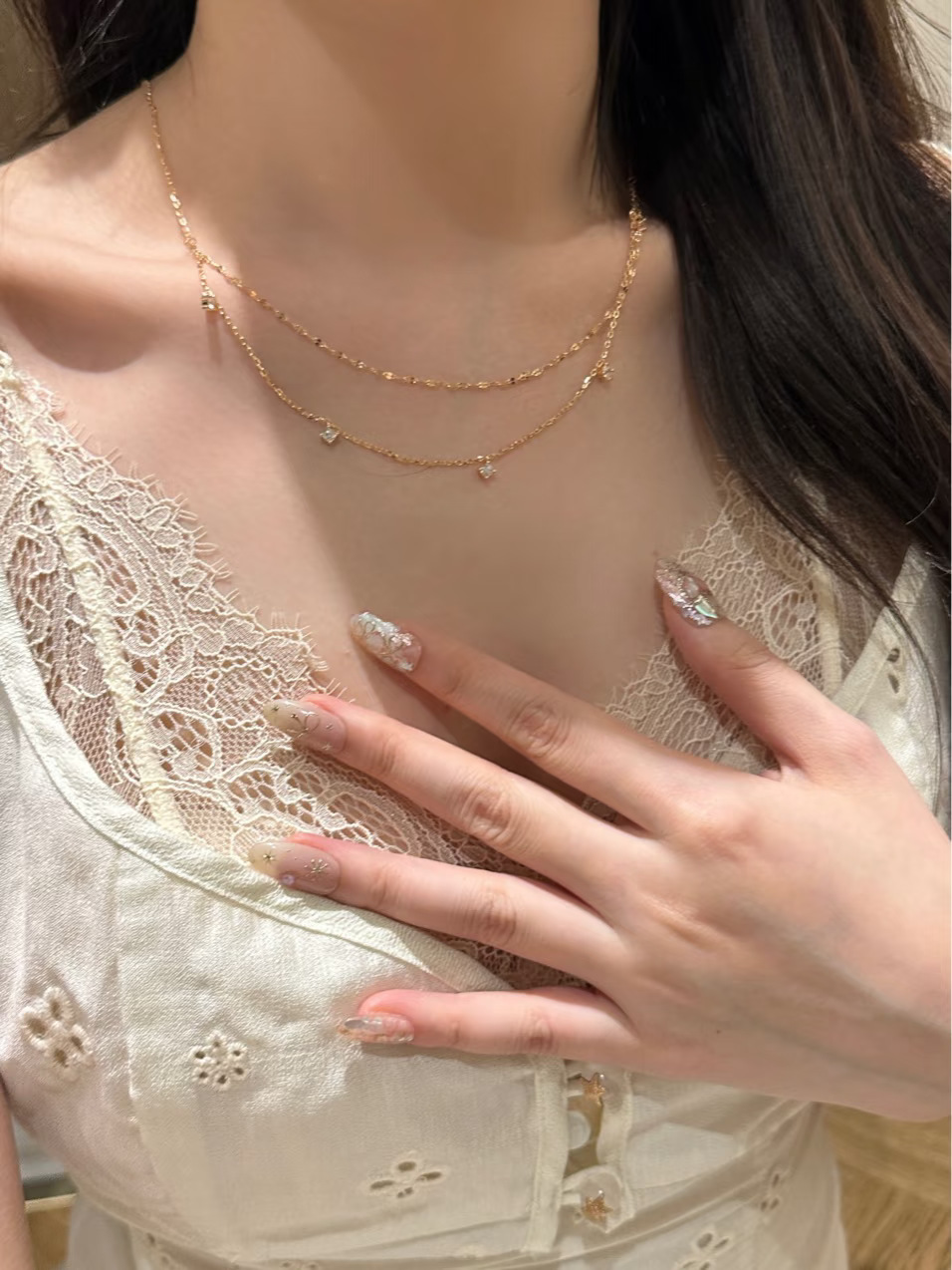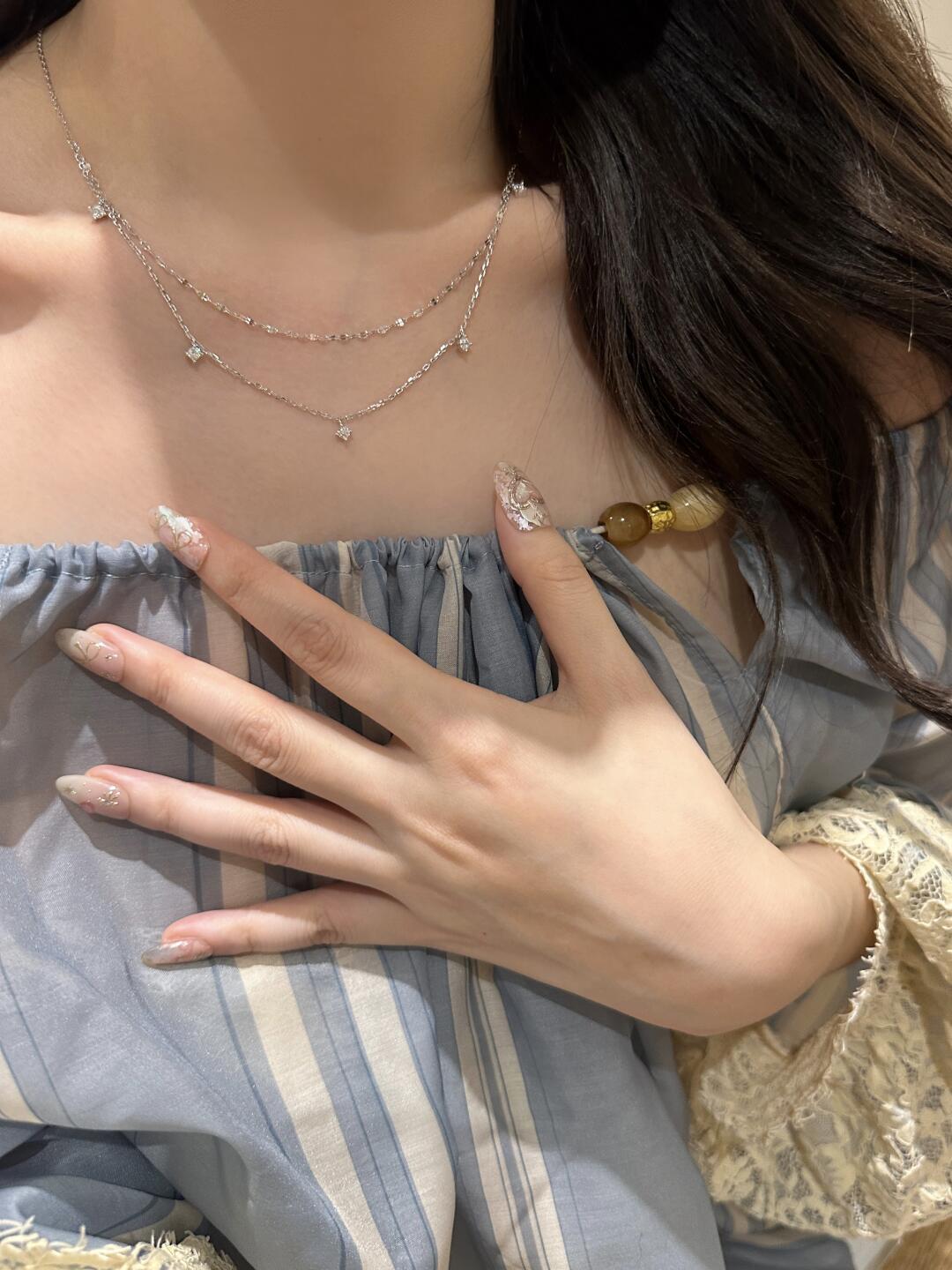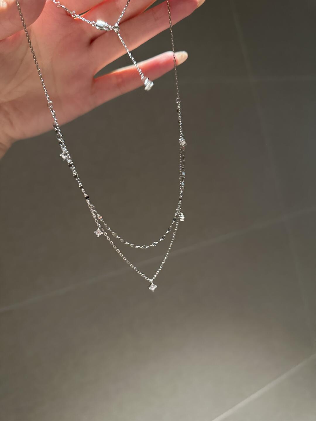Xiaohongshu Same Style S925 Sterling Silver Double-Layer Necklace for Women Rose Gold Zircon Clavicle Chain Ins Light Luxury Style Stackable